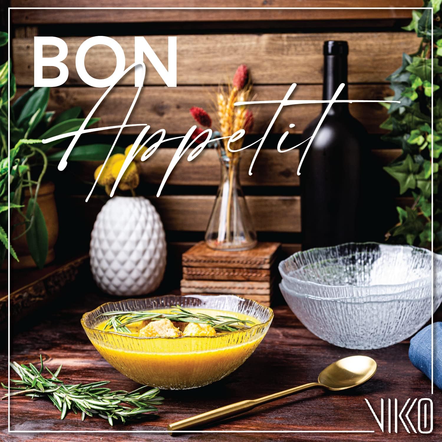 Vikko Soup Bowls, 6.25 Inch Salad Bowls, Glass Soup Bowls, Elegant Textured Glass Bowls, Set of 4, Dishwasher Safe