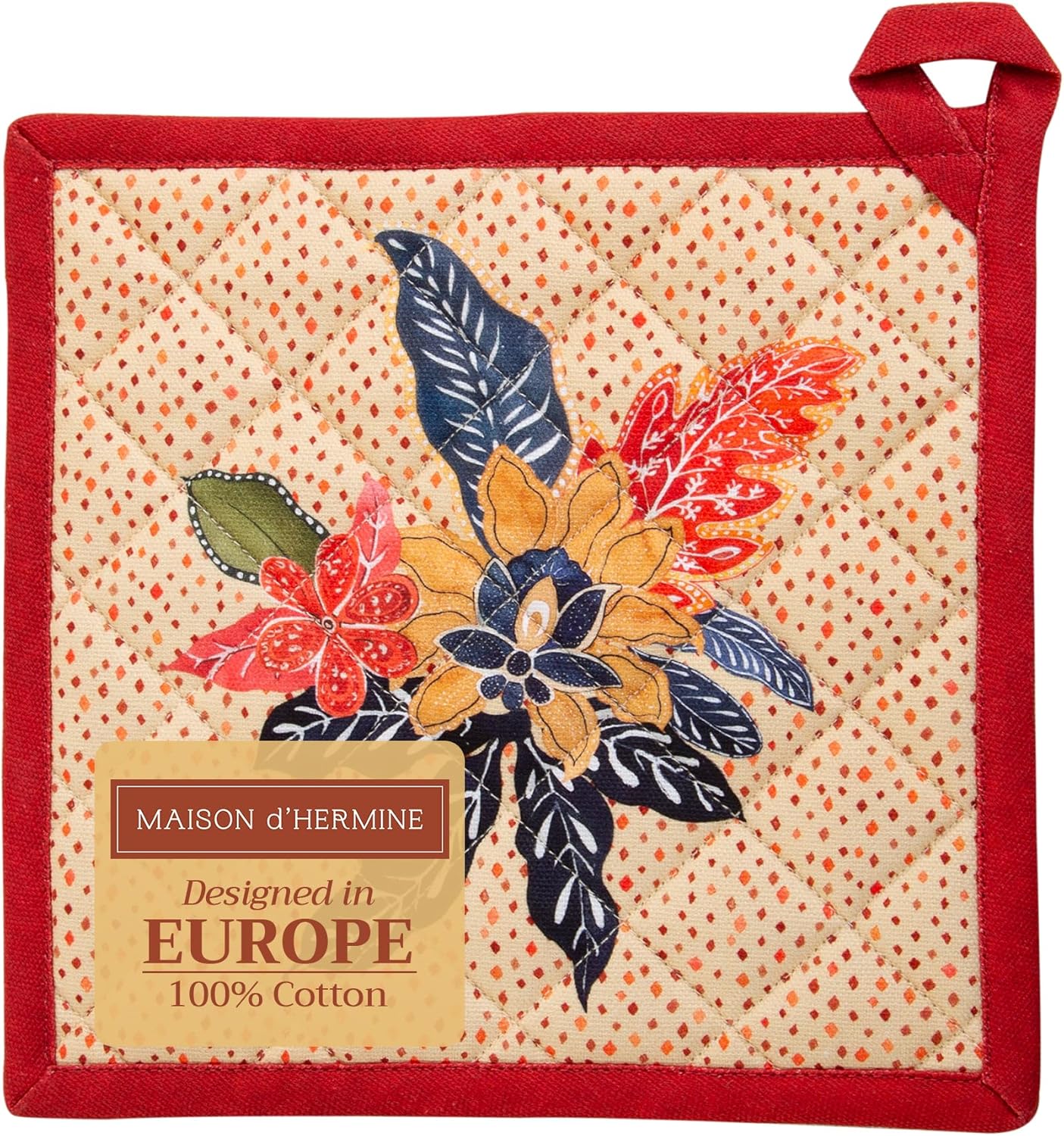 Maison d' Hermine Pot Holders 100% Cotton Heat Resistant Potholders 8" x 8" Hot Pads with Loop BBQ, Cooking, Baking, Grilling, Kitchen, Handling Hot Pans (Pack of 1, Kalahari)