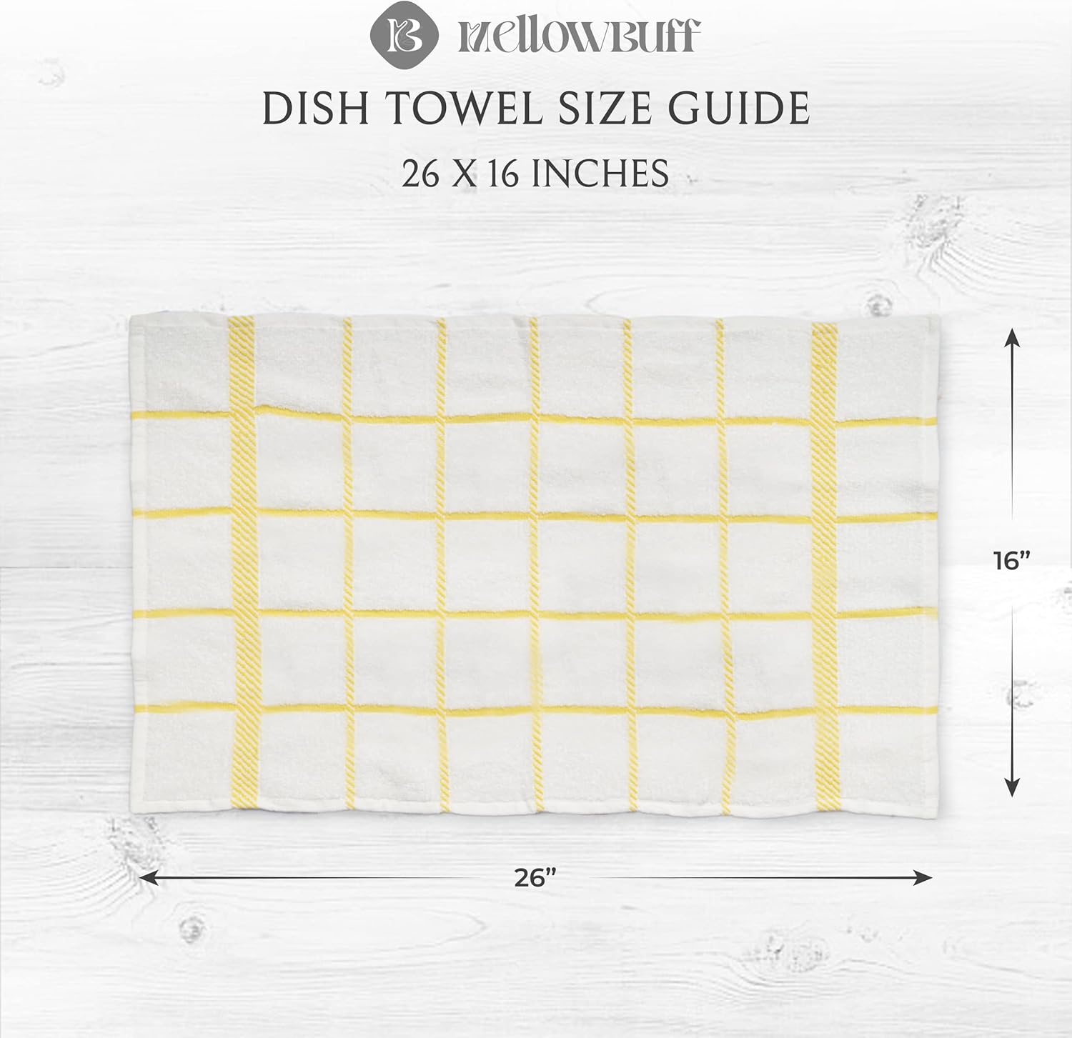 - Mellow buff dishcloths and dishtowels are made of 100% cotton with supreme quality and exquisite workmanship. Designs are simple, perfect size and it will give the feeling of being home by co-ordinating with most kitchen decor.