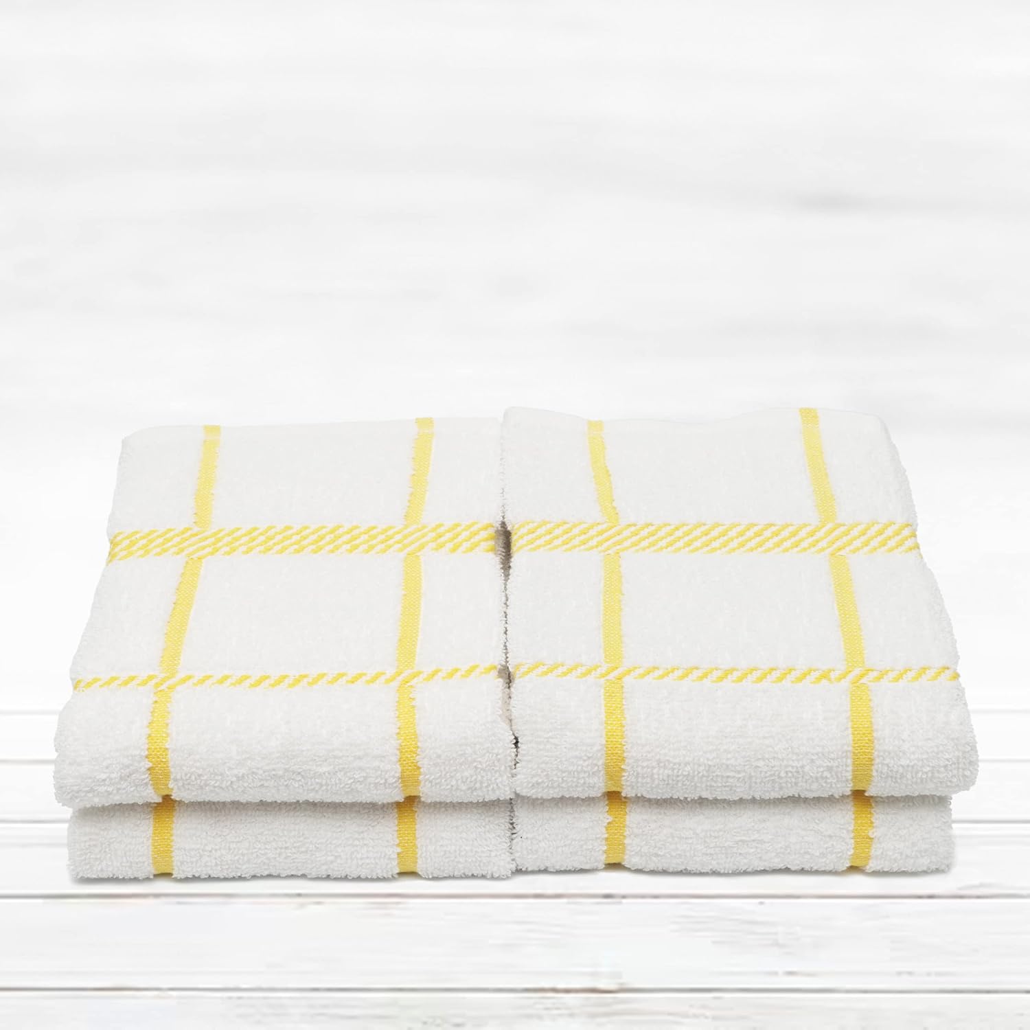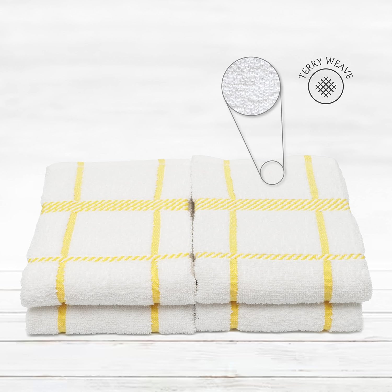 100% Cotton Terry Dish Towels, 4 Pack Checks, 16 x26 Inches, Super Soft and Absorbent Kitchen Towels, Perfect for Kitchen Cleaning and Dish Washing | Yellow