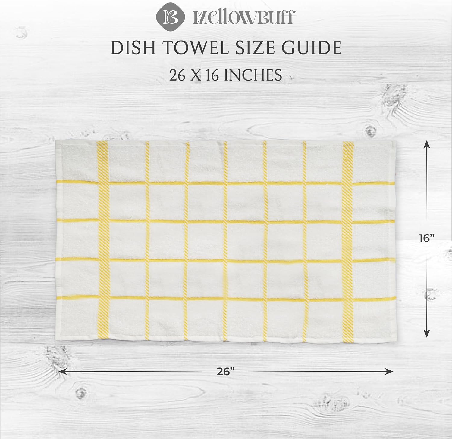 - Mellow buff dishcloths and dishtowels are made of 100% cotton with supreme quality and exquisite workmanship. Designs are simple, perfect size and it will give the feeling of being home by co-ordinating with most kitchen decor.
