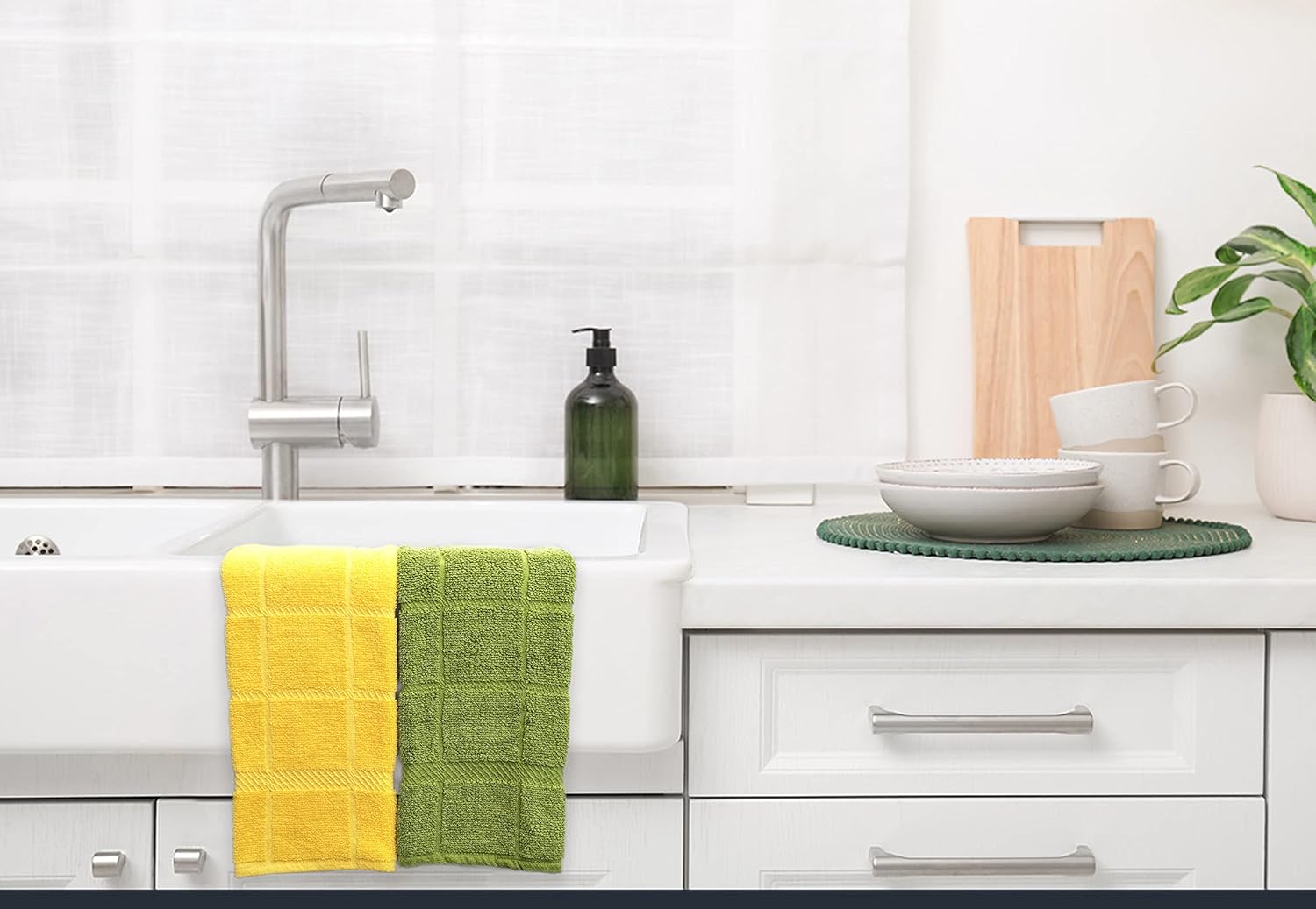 100% Cotton Terry Dish Towels, 4 Pack Solid, 16 x26 Inches, Super Soft and Absorbent Kitchen Towels, Perfect for Kitchen Cleaning and Dish Washing | Assorted