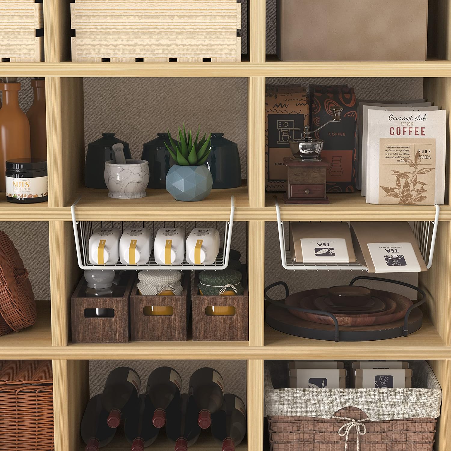 - No hardware Needed: Simply slide it onto a shelf in your cabinet, pantry room, bathroom and office desk-top.