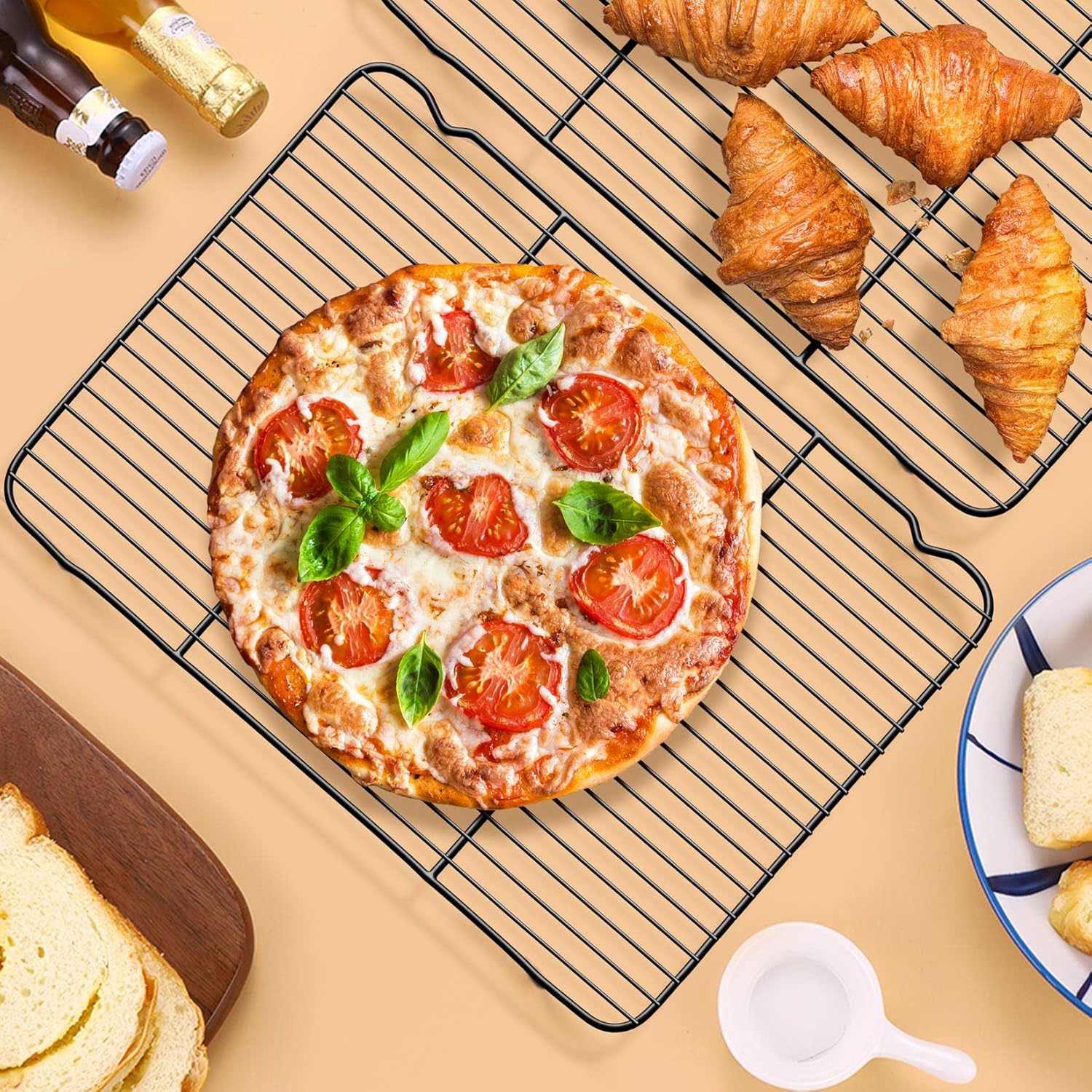 - 【NON-STICK & EASY CLEANING】Our cooking racks are coated with non-stick coating, Nonstick and smooth surface can prevent food sticking on the racks, Helps you clean them with a breeze, Conveniently cleaned by hands with soft sponge and soapy water, Please do not use steel wool to clean them for prolonging their service lifetime