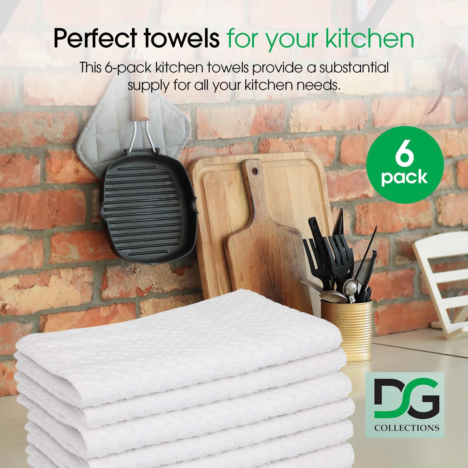 DG Collections Terry Dish Towels, 100% Cotton Kitchen Towels, Set of 6 (18x28 inch) Hand Towels - 400 GSM, Absorbent Terry Cloth Dish Towels for Kitchen, Soft Tea Towels - White Color