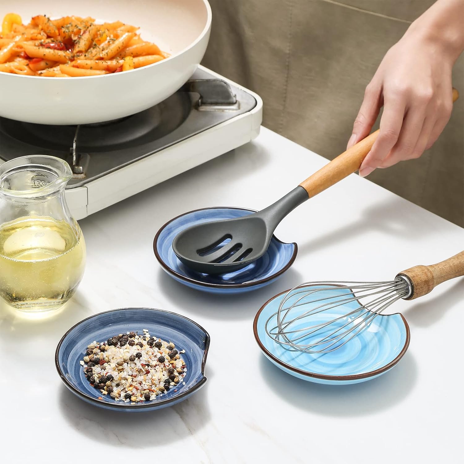 - KEEP YOUR KITCHEN CLEAN - These spoon rests stack well for storage and help you keep your counters, tables, stove tops, and buffet lines no worry of spills and messes. The smooth surface makes it easy to clean. Safely used in the Microwave/Dishwasher/Oven/Fridge without fading away.