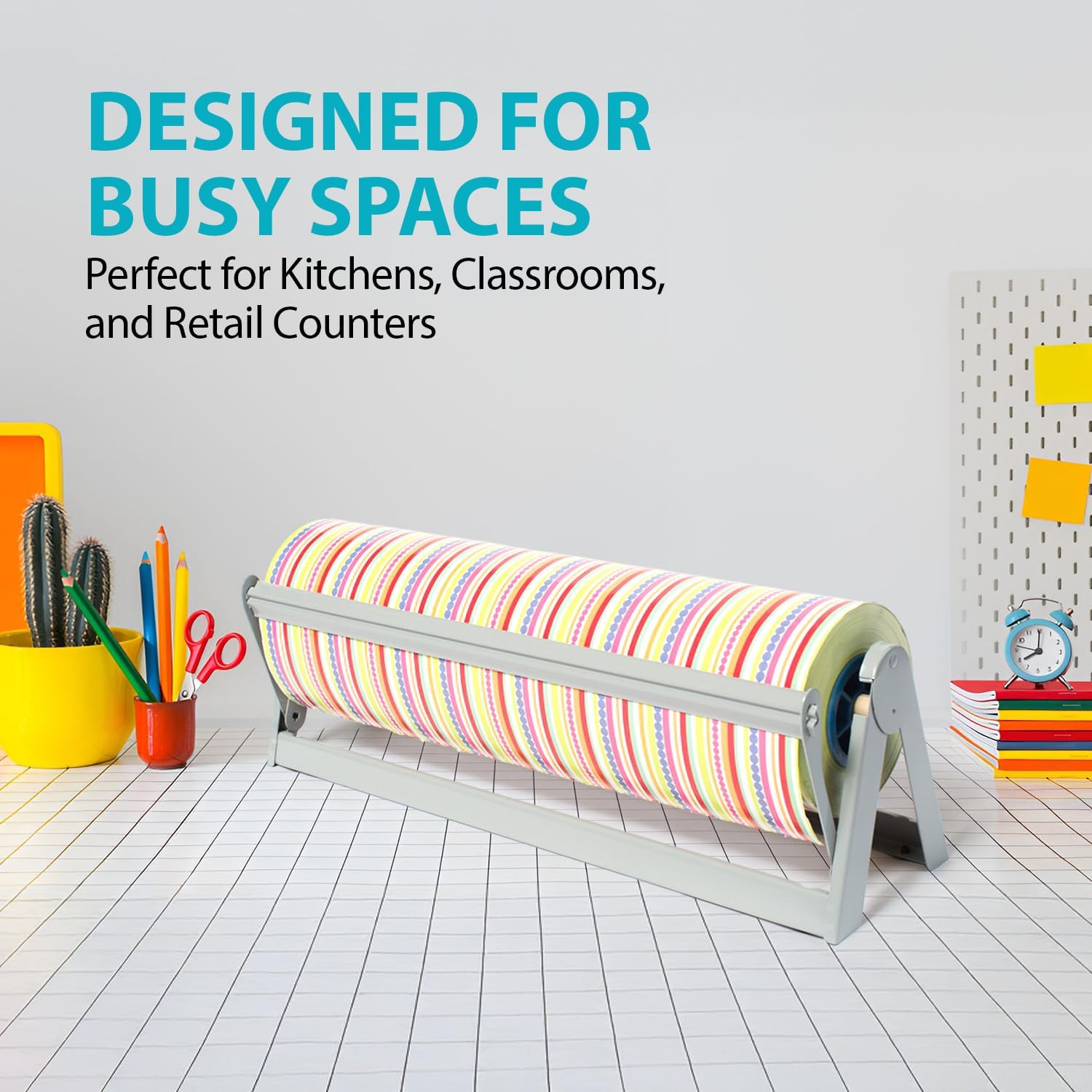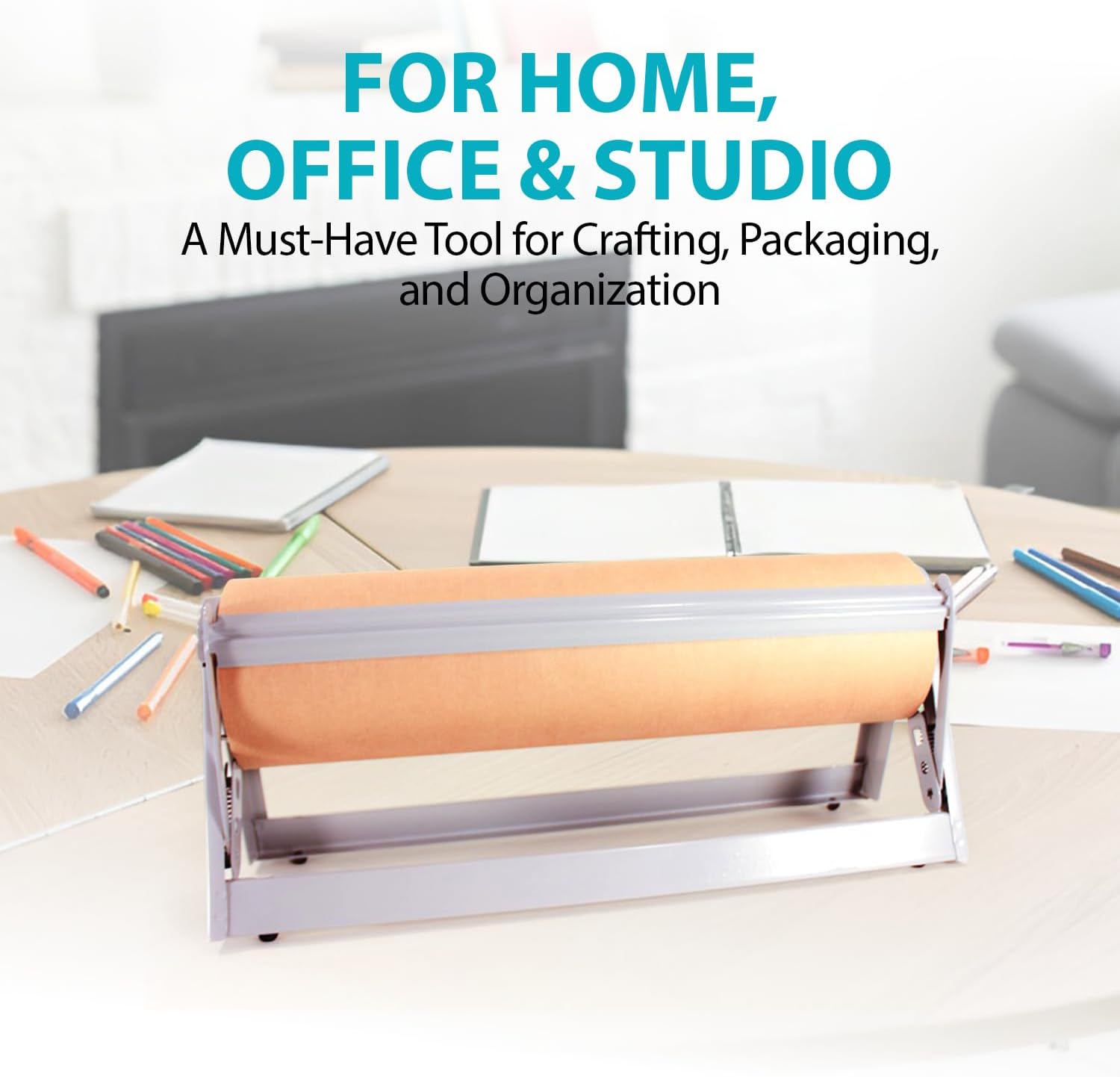 - KEEP PAPER NEAT, ACCESSIBLE & READY TO USE – No more messy rolls or wasted paper with our multi-purpose paper roll cutter. This paper roll dispenser and cutter keeps your paper organized, easy to grab, and always ready when you need it. This kraft paper roll dispenser is a smart, time-saving solution for busy kitchens, classrooms, or workspaces.