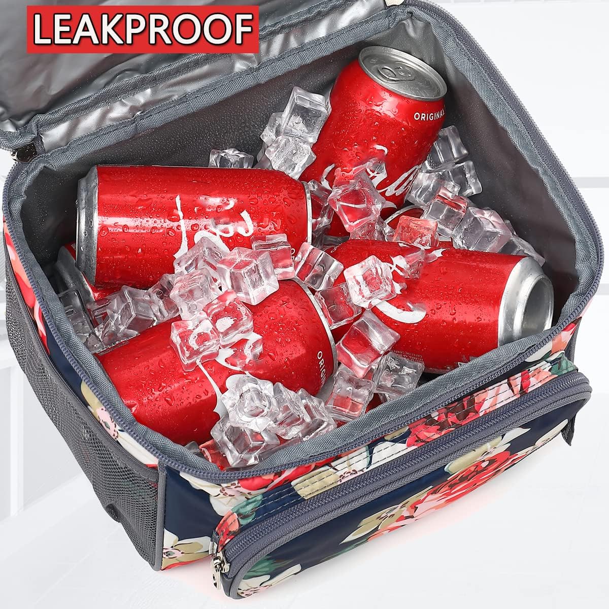 FlowFly Double Layer Cooler Insulated Lunch Bag Adult Lunch Box Large Tote Bag for Men, Women, With Adjustable Strap,Front Pocket and Dual Large Mesh Side Pockets