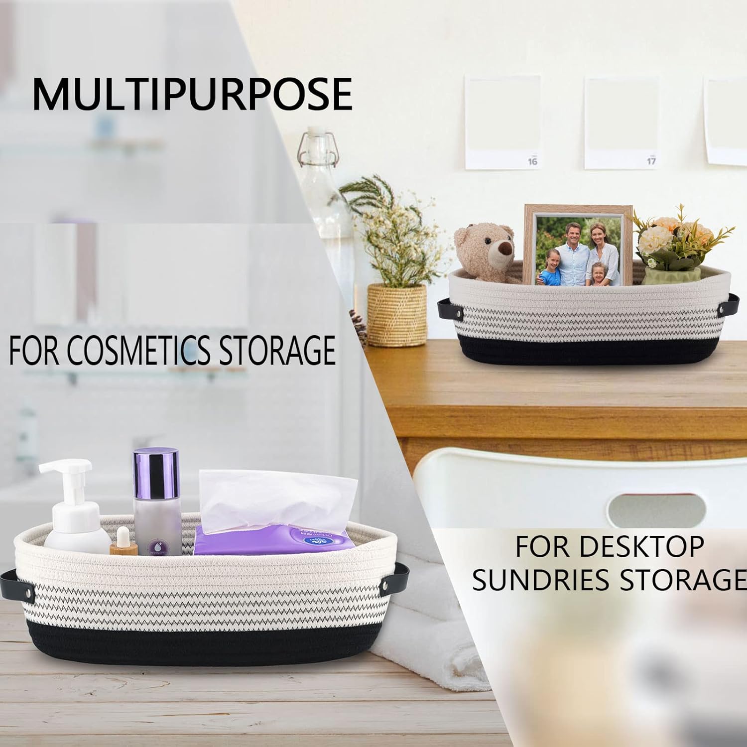2 Pack Cotton Rope Toilet Basket Bathroom Decor Baskets, Toilet Paper Holder Basket, Farmhouse Home Decor Organizing 13"x5.9"x4" Black