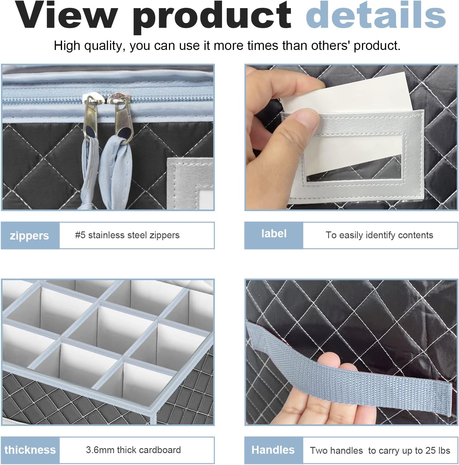 - 🥃【Sturdy Handles & Zippers】: The china storage containers with 2 sturdy handles on the sides for easy carrying and moving. Additionally, two #5 stainless steel zippers are designed to better protect the cups inside the box and make it easy to store and retrieve cups.