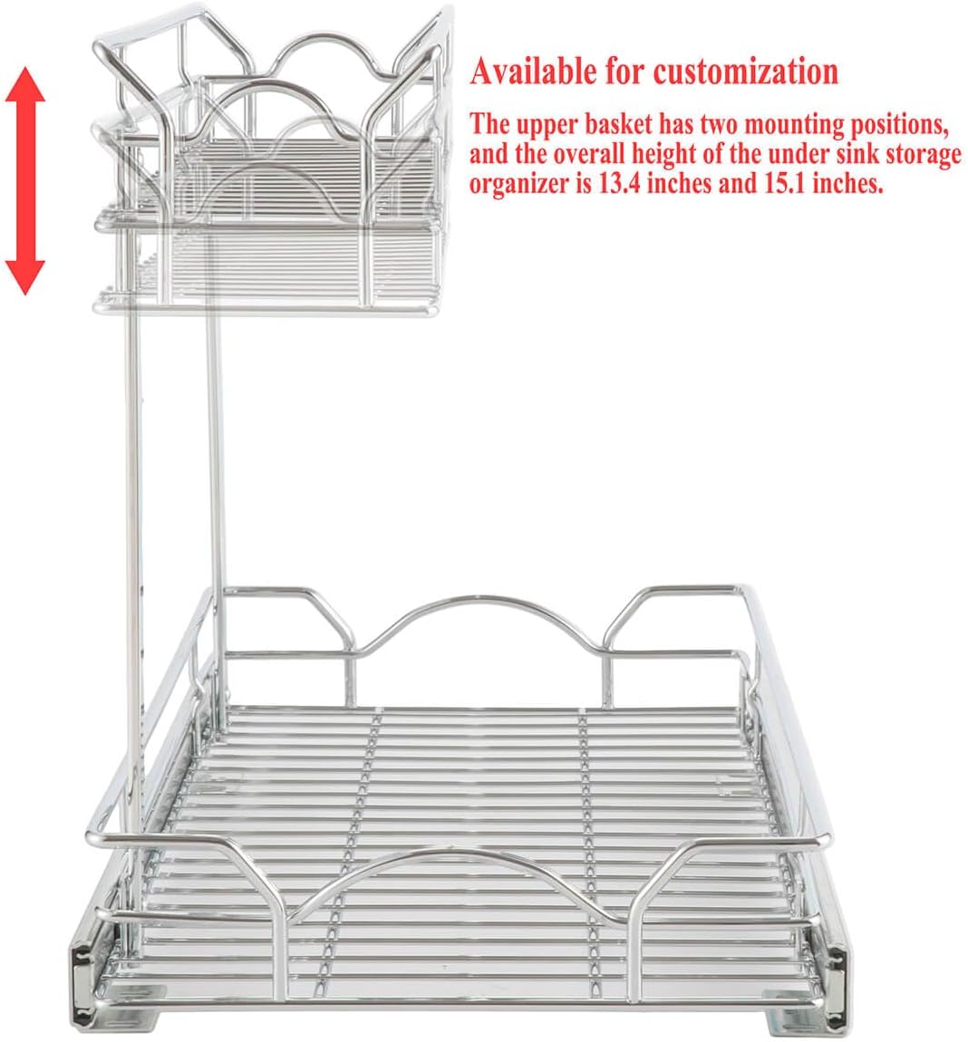 - Customizable Installation Design: better adapted to different cabinets. The upper basket has two mounting heights to choose from, and the lower basket can also be adjusted by different mounting methods of the bracket. If your cabinet has a lip, this design can easily help you solve the problem.