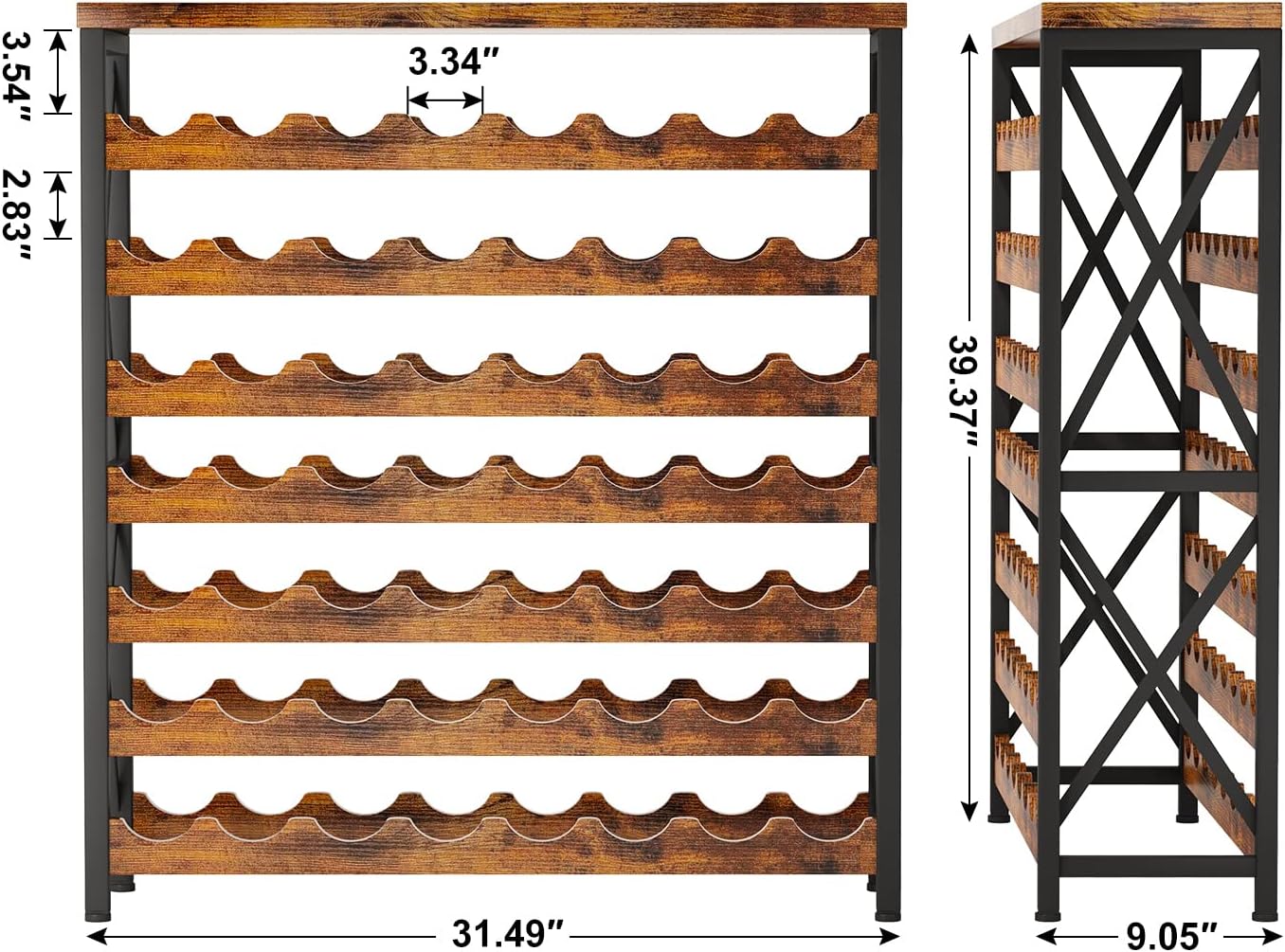 - 【Side Iron Forks for Added Stability 】The side iron forks not only beautified the appearance of this wine rack but also increase its stability. They provide additional support to the wine bottles and prevent them from slipping or falling, ensuring that your wine collection is safe and secure.