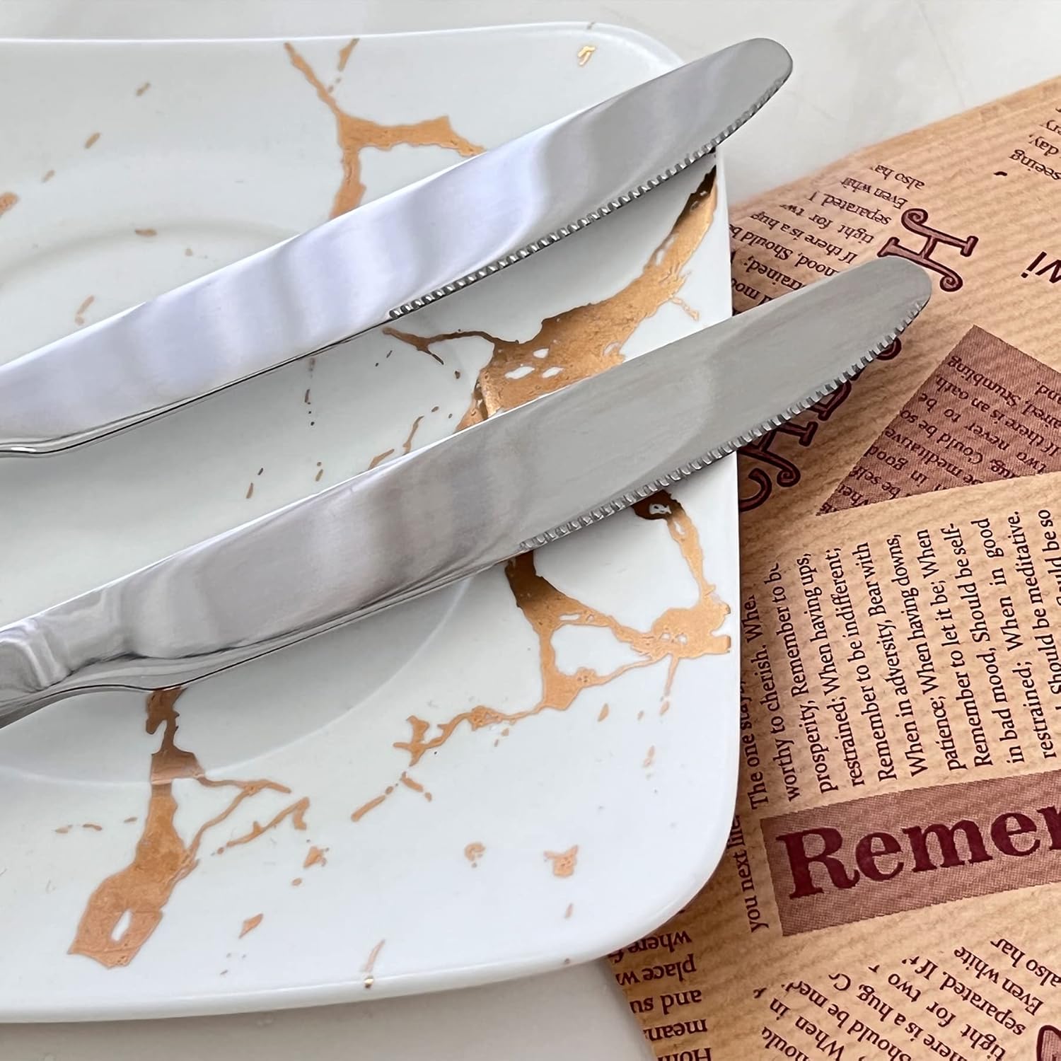- EXCELLENT SHAPE AND CLASSIC DESIGN : The classic elegant Dinner Knife features a beautiful Round Edge handle. Integrated stamping molding, not easy to age, ergonomic design, comfortable grip Sharp Teeth, uniform and clear sawtooth, powerful cutting. Thanks to its firm construction and delicate curves to add more elegance and class to your table, elevate your everyday meals to the next level.