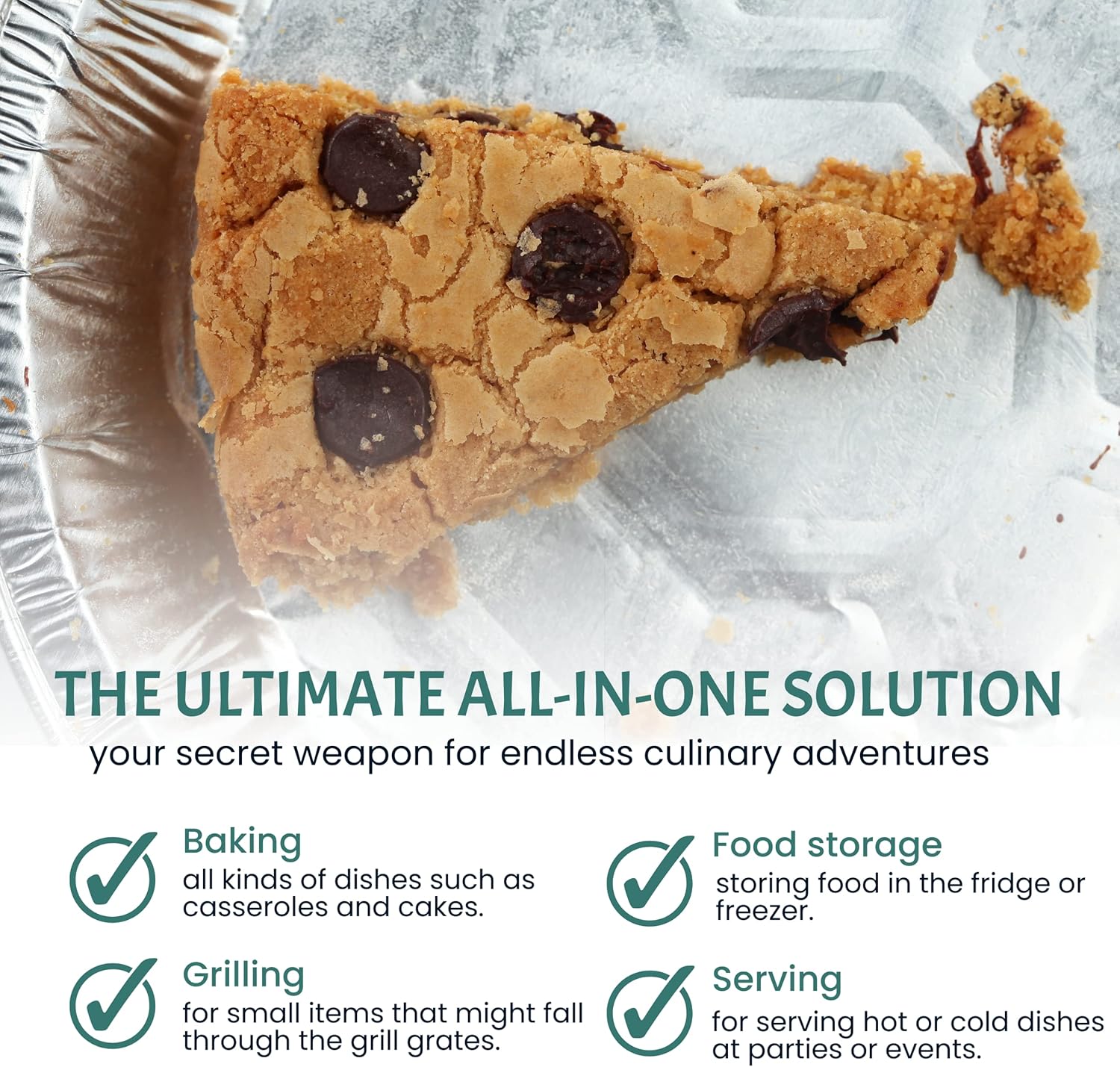 - ๐จ๐ฝ๐ด๐ฟ๐ฎ๐ฑ๐ฒ ๐ฌ๐ผ๐๐ฟ ๐๐ผ๐ผ๐ธ๐ถ๐ป๐ด ๐๐ฎ๐บ๐ฒ - With our lightweight and durable tin foil baking pans and aluminum foil pie pans made of premium quality thick aluminum foil with high side walls, ensuring a mess-free and enjoyable cooking experience every time!