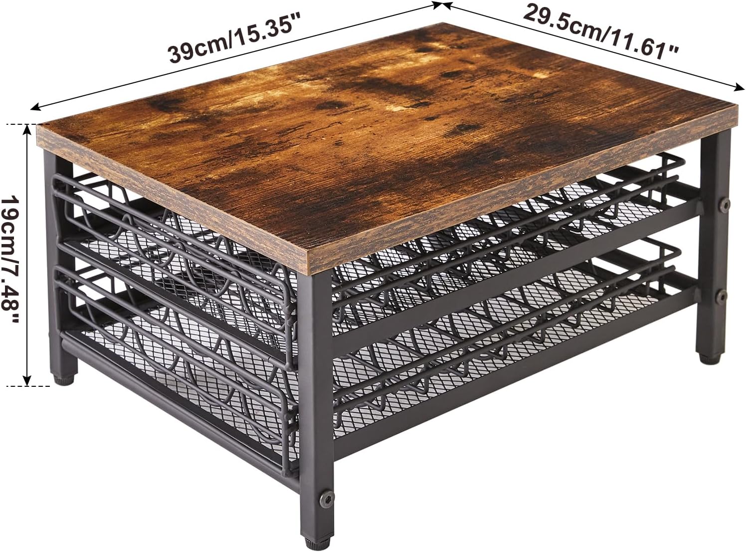 IBUYKE 2-Tie Coffee Pod Drawer Holder,80 Capsule Pods,Compatible for Nespresso Vertuo Pods,Wooden Top and Mesh Shelves,Home Kitchen Counter Coffee Bar Organizer, Rustic Brown,TCJ102H