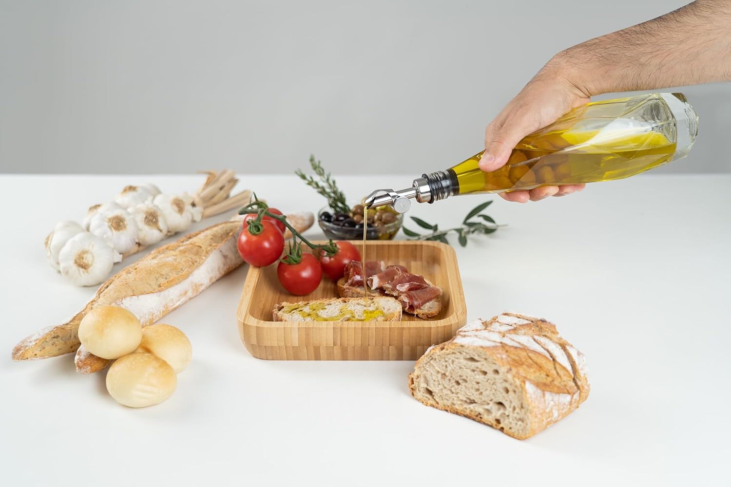 - ✔️ EASY AND CONVENIENT - Kitchen oil dispenser bottle for home or restaurant is designed for easy and mess-free pouring, These olive oil bottles automatically opened when pouring down and closed when pouring up vertically without manual closing. Free up your hands while you're busy cooking, making it a convenient addition to any kitchen,The easy-to-use spout ensures controlled pouring and helps prevent spills and leaks.