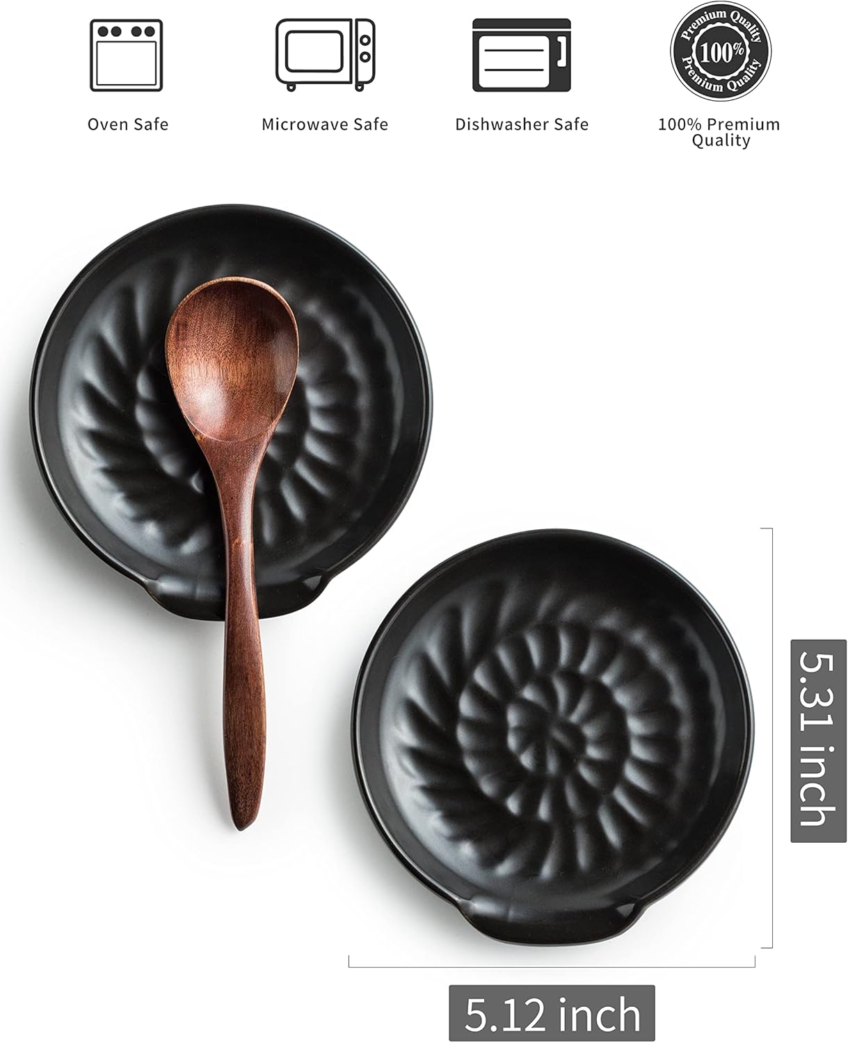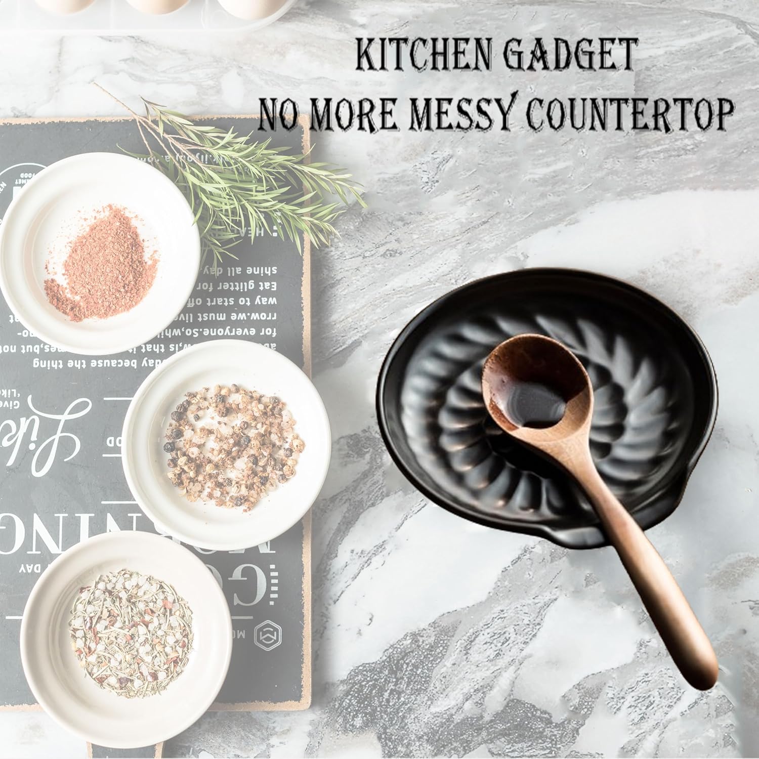- With a high-density glaze coating, the ceramic utensil holder is so smooth that you can simply put the spoon rests in the dishwasher or simply scrub it by hand. The round and slotted design allows the spoon rest to store most kitchen utensils without taking up too much space in the cabinet