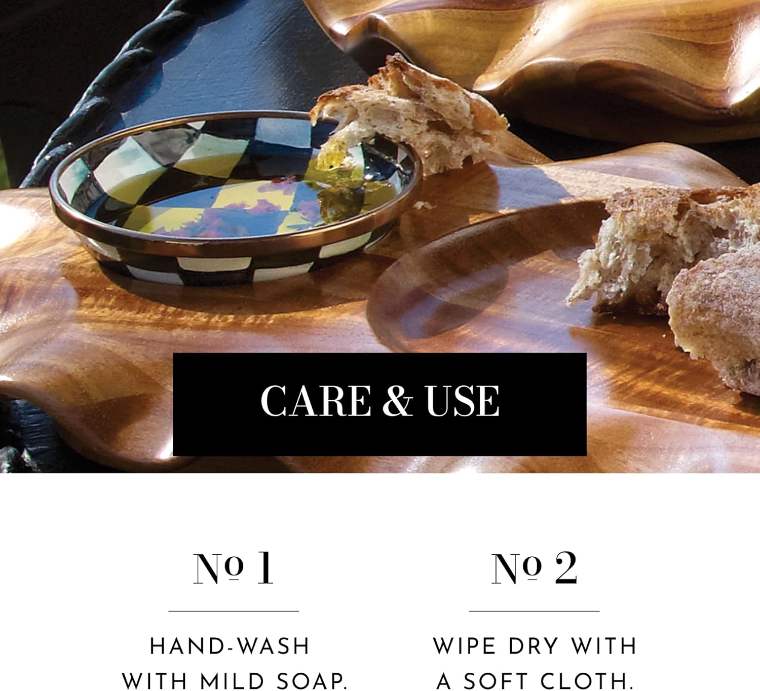- ENAMEL BOWL FOR DIPPING: This Enamel Dipping Bowl is sized just right for small bites and fits perfectly into a MacKenzie-Childs wood bread and oil board. It’s a great addition to your dip bowls for parties and works great as an appetizer or sauce bowl.