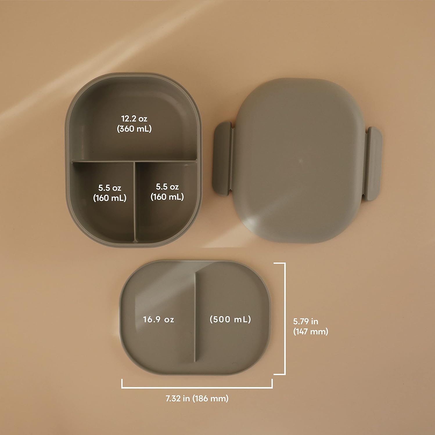 mushie Kids Bento Lunch Box | 3-Compartment & Removable Divider + Fork & Spoon Utensils | Great For Meals, School, Snacks On-the-Go | Dishwasher Safe (Sage)