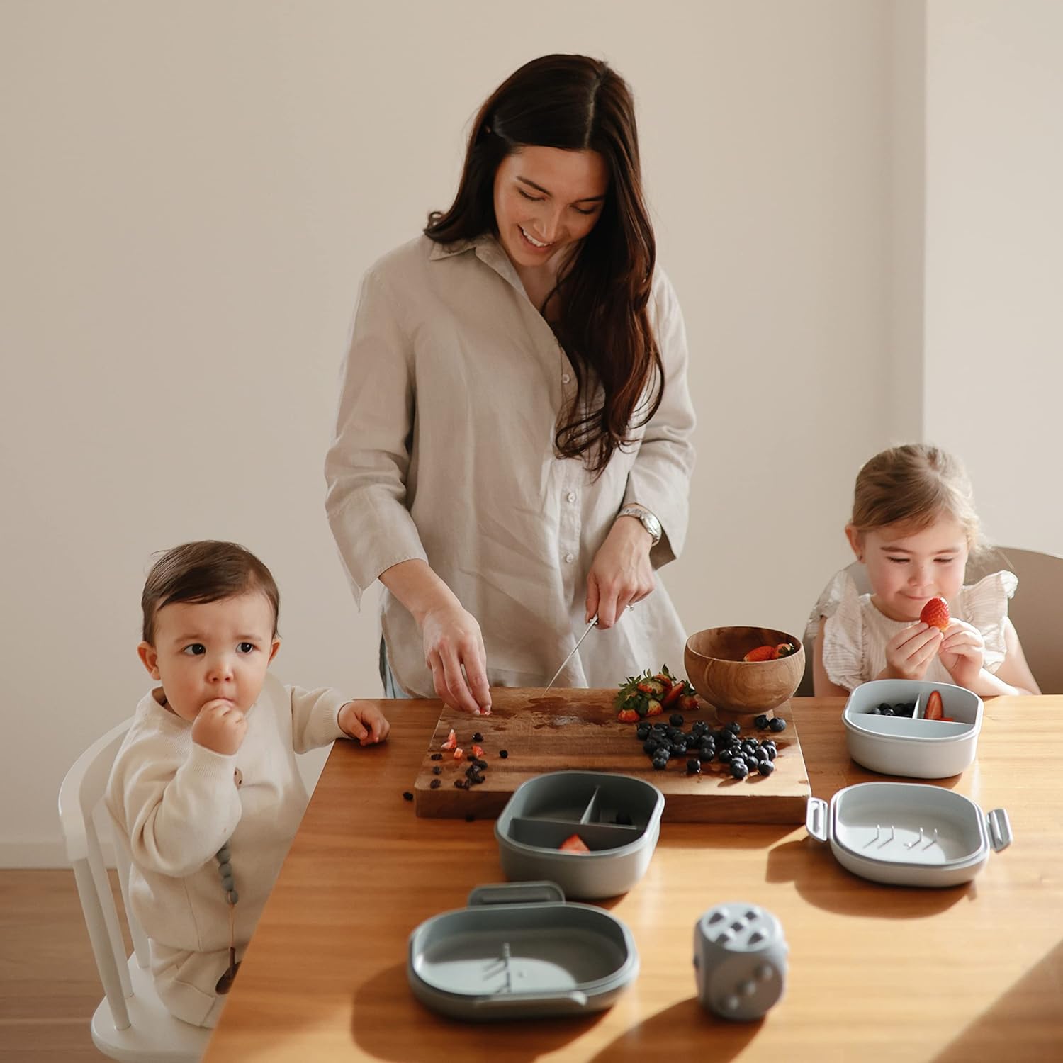 mushie Kids Bento Lunch Box | 3-Compartment & Removable Divider + Fork & Spoon Utensils | Great For Meals, School, Snacks On-the-Go | Dishwasher Safe (Cloud)