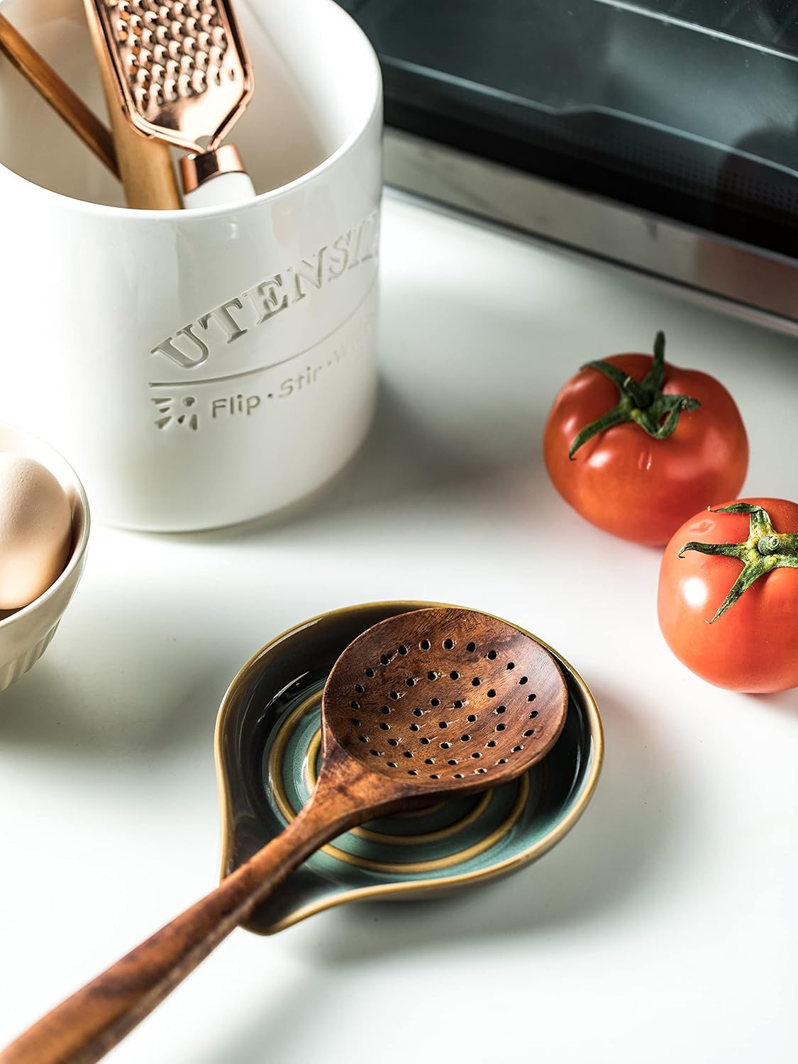 - Are you still worried about having no place to put your kitchen tools? This large and wide spoon rest holds kitchen cooking spoons, coffee spoons, spatulas and more, making it the perfect kitchen item to keep your kitchen countertop neat and tidy.