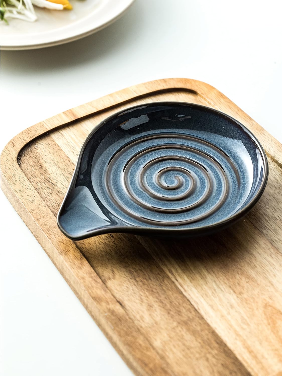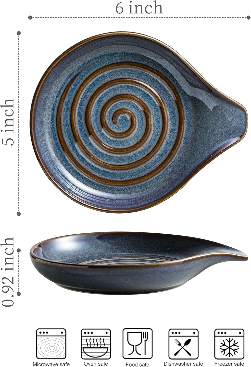 - [Unique Look] The reactive glaze with swirling pattern creates an elegant look. This spoon rack will easily complement any kitchen style. No need to sacrifice style for function; add a classic touch to your kitchen with this spoon rest.