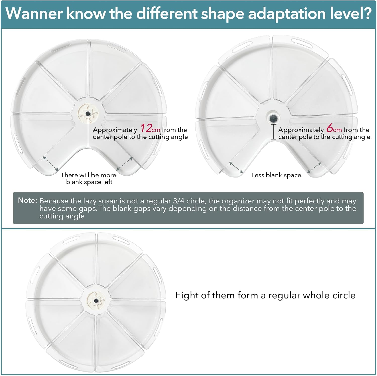 - SUITABLE SIZE: The 1/8 wedge-shaped condiment container can fit different size of food while neatly organized them in places. It comes in a set of 8 pieces and is most suitable for 28” diameter corner cabinet