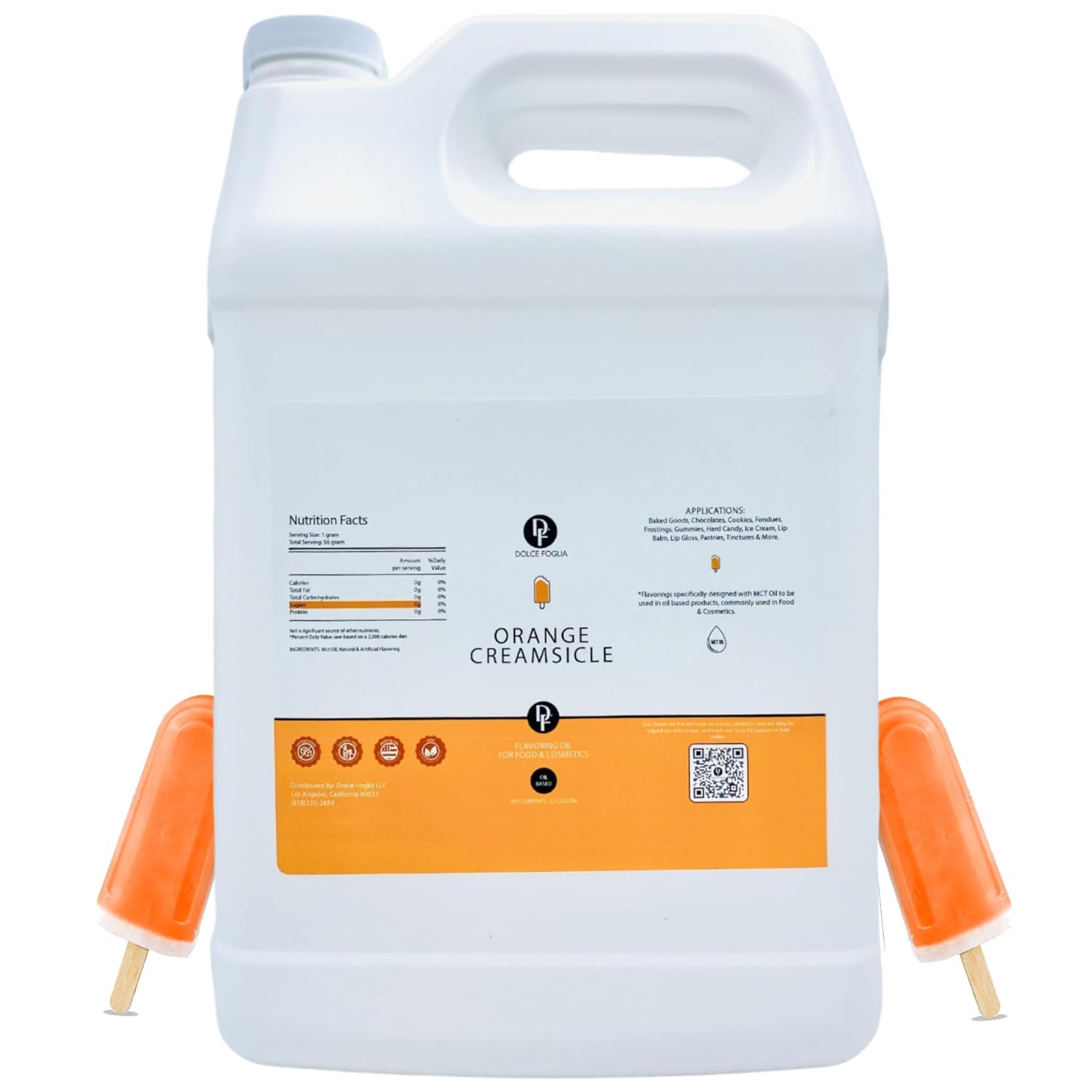 Dolce Flav Orange Creamsicle Extract - 1 Gallon Oil-Soluble Multipurpose Flavoring Ideal for Candy Making, Baking, Lip Balm, and Ice Cream - Perfect Kitchen Gift for Holidays