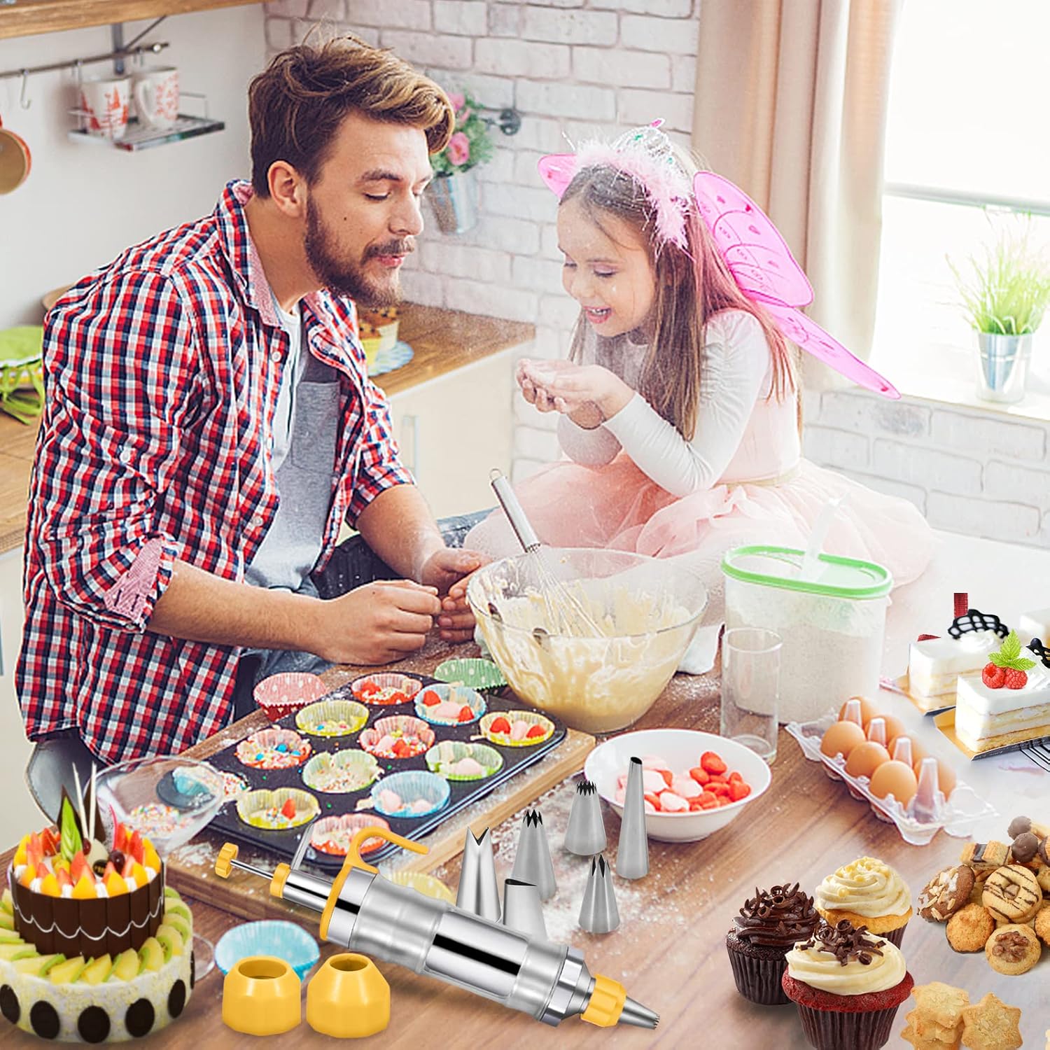 - 【Cupcake Decorating Kit Wearable & Safe】Our cake icing decoration gun and nozzles are made of high quality 304 stainless steel, the plug and cake scrapers are made of high quality ABS material, non-toxic, smooth, non-stick surface, heat-resistant, wear-resistant, not easy to crack or rust and safe to use. Note: Please do not use hard icing to avoid damaging the dessert decorator, Not dishwasher safe