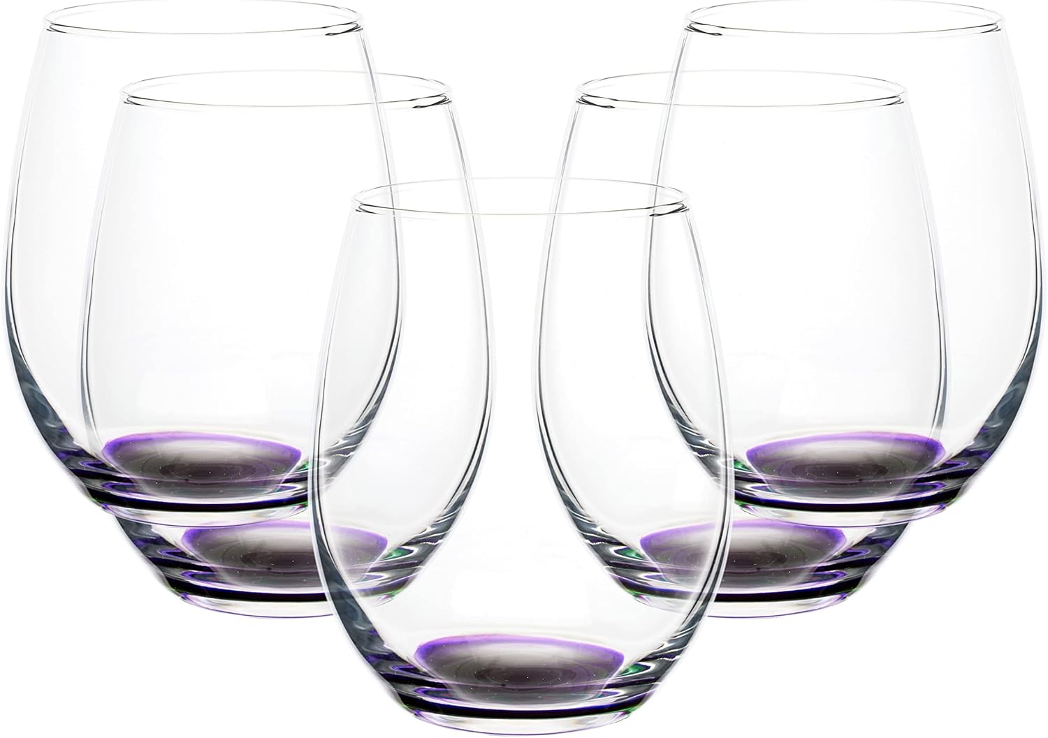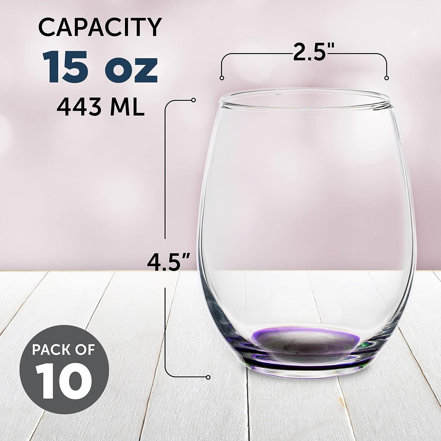 DISCOUNT PROMOS Stemless Wine Glasses in Bulk by ARC Perfection, 15 oz, 10 Pack, Purple or White Wine Glass Set, Purple