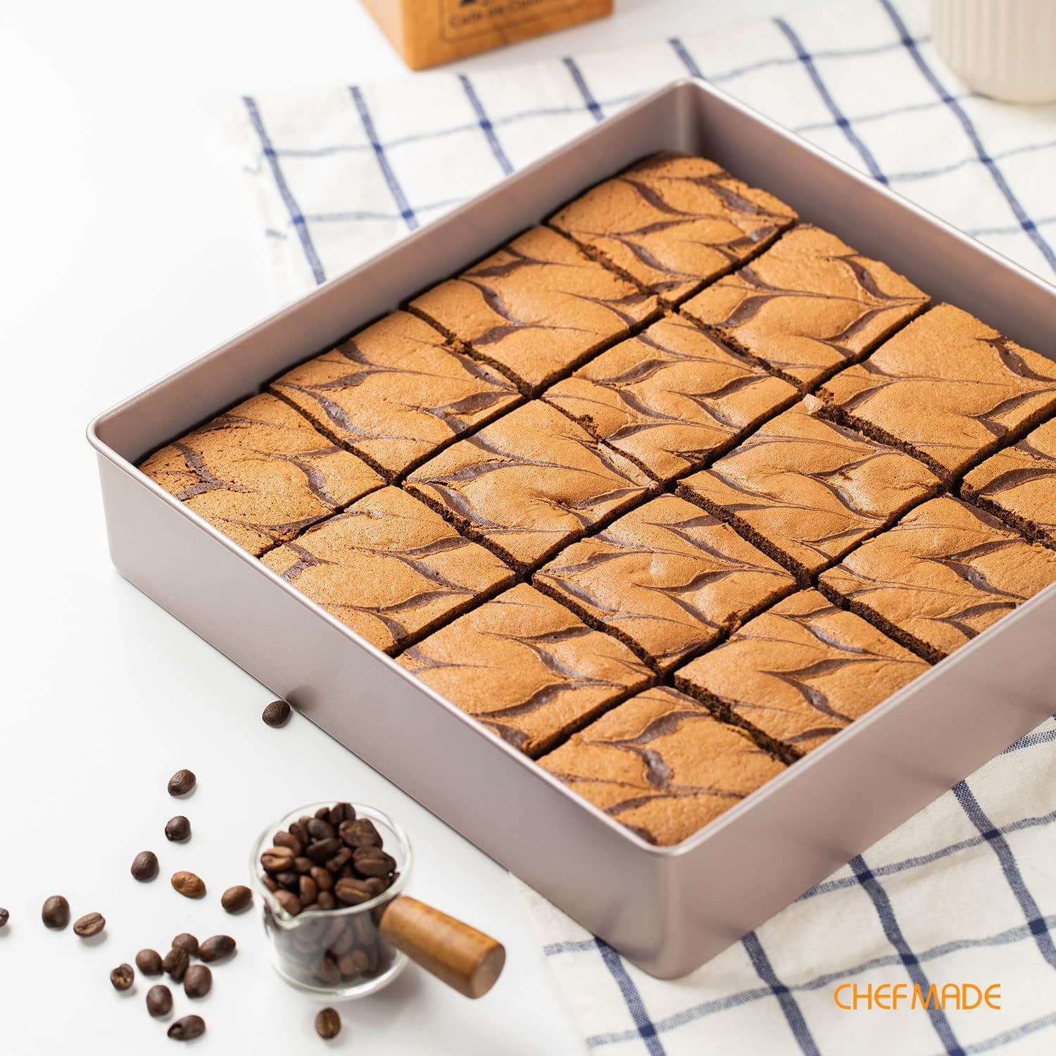 CHEFMADE 11-Inch Square Cake Pan, Non-Stick Deep Dish Bakeware for Oven Baking (Champagne Gold)