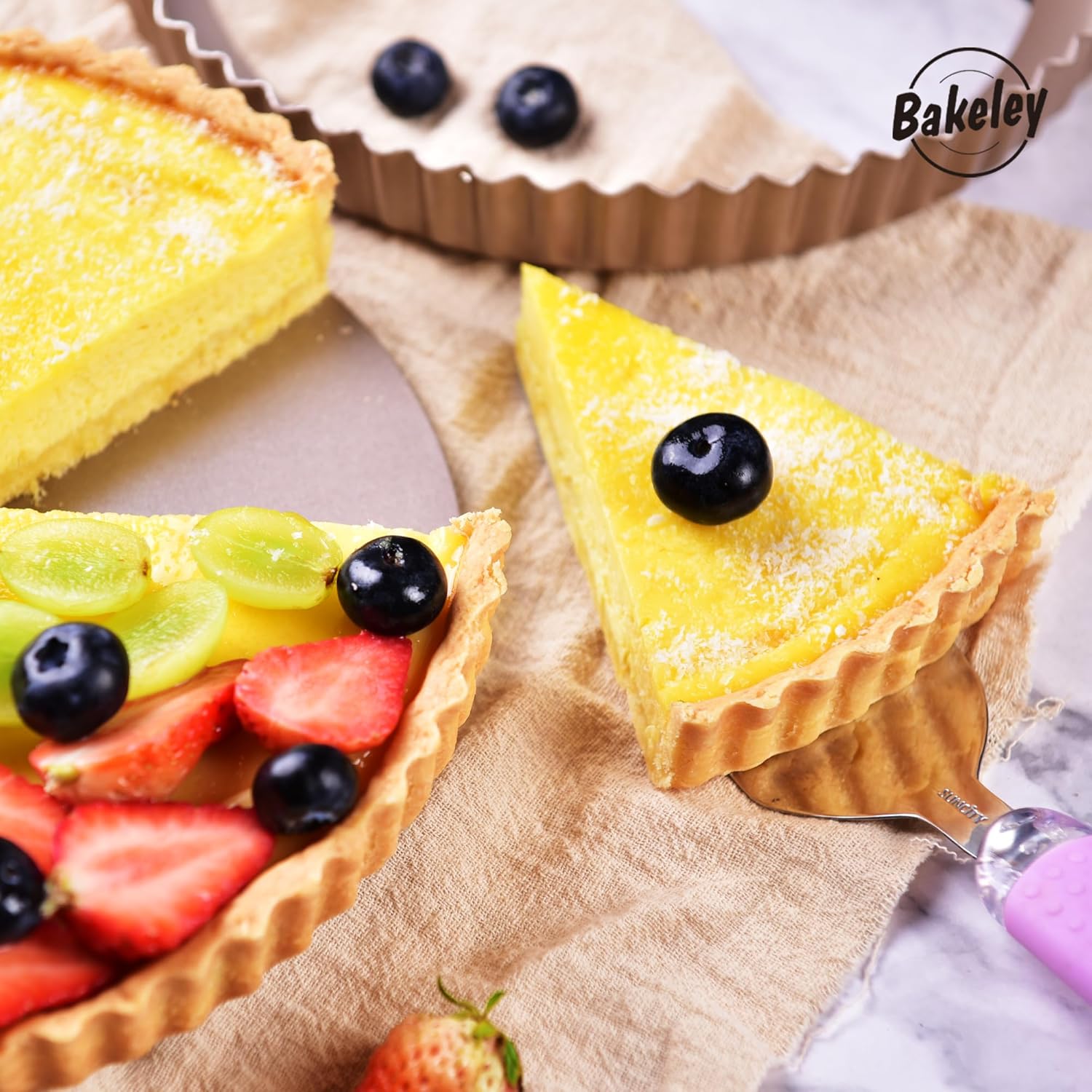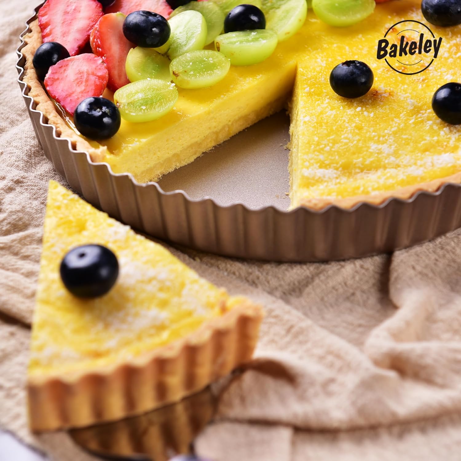 - 【Versatile Use for Baking】Bakeley tart pan is ideal for making quiche, cheese cakes, chocolate cakes, tarlets, fruit flans, pizza, egg tarts and others. Bakeley tart pans are perfect for any kind of tarts. Crust slides out of the pans so well, and it’s a good choice for hobbyists, bakers and chefs.