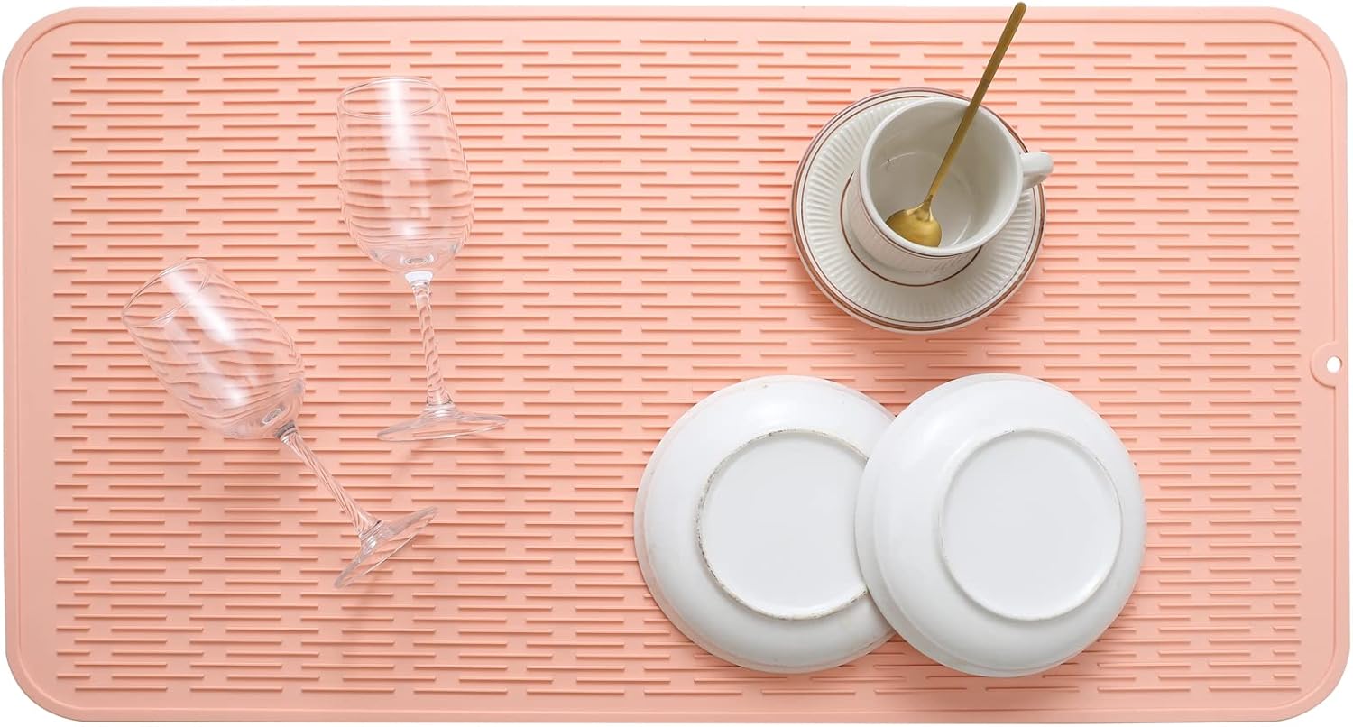 Silicone Dish Drying Mat for Multiple Usage,Easy clean,Eco-friendly,Heat-resistant Silicone Mat for Kitchen Counter or Sink,Refrigerator or Drawer Liner Pink 4XL 32 inches x 18 inches