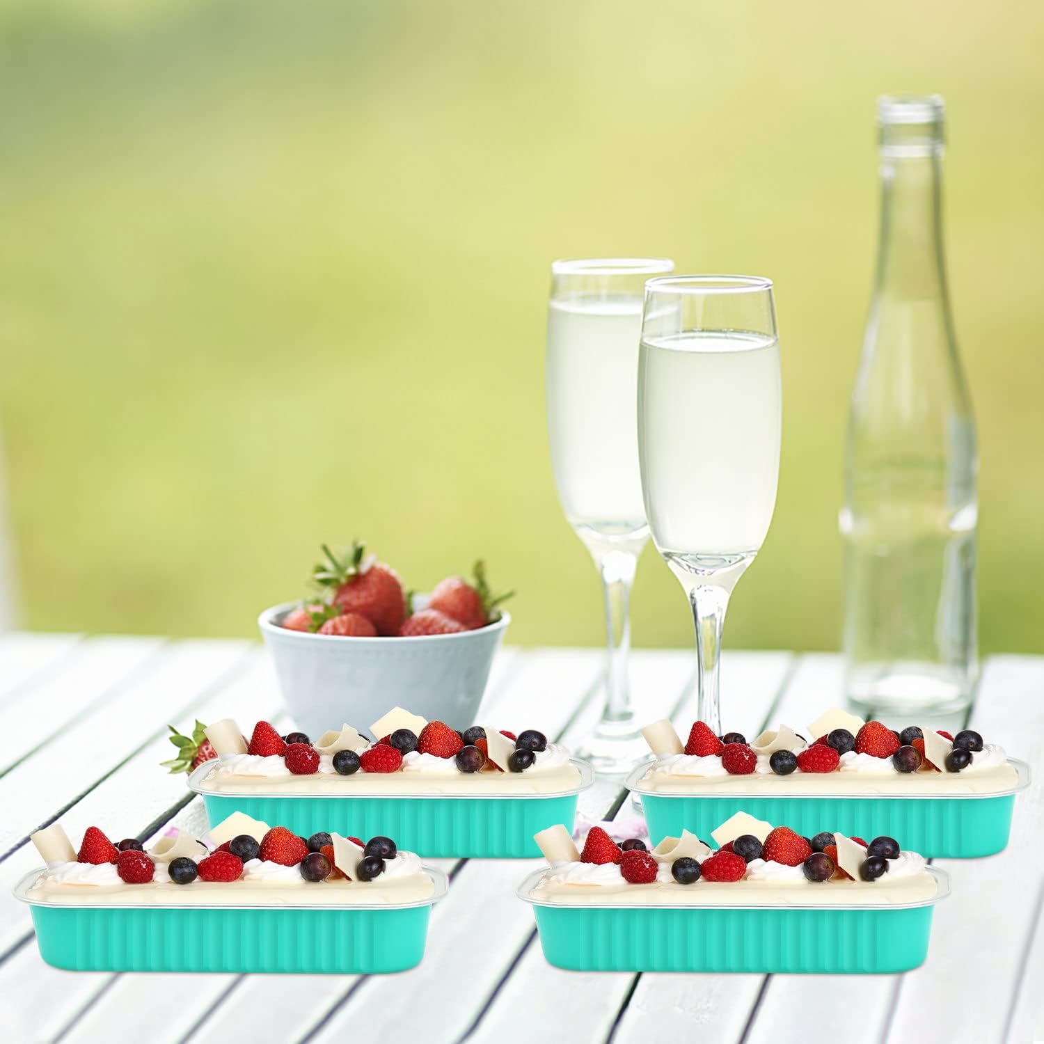 LNYZQUS Mini Loaf Baking Pans with Lids 100 Pack, 6.8oz Rectangle Mini Cake Tins Baking Cups,Disposable Aluminum Foil Baking Pan Muffin Tins Containers -Cyan Blue