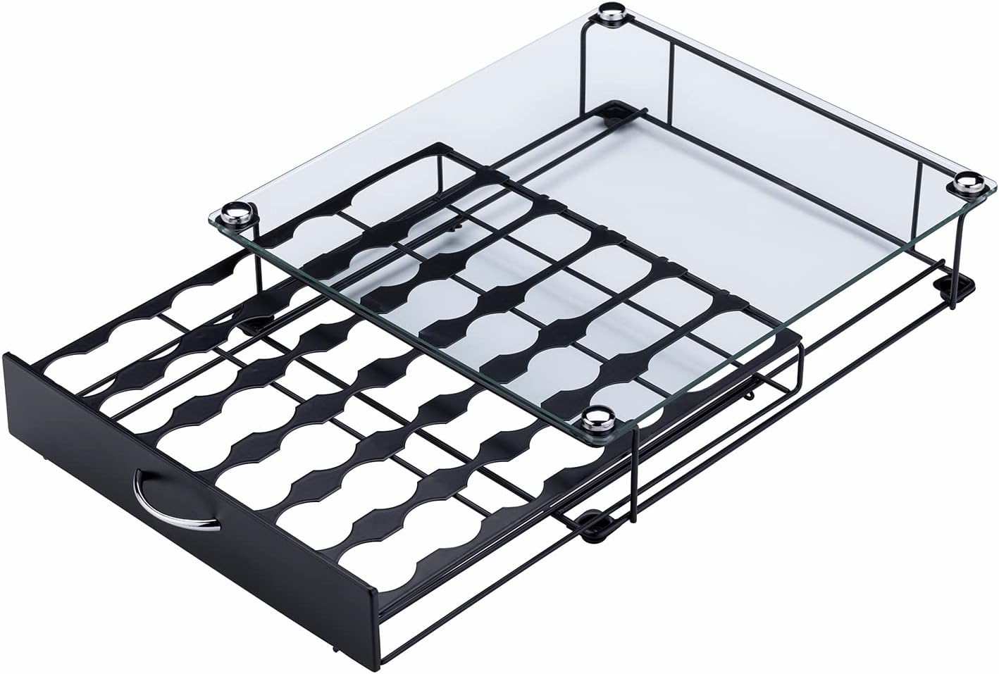 Rice rat Coffee Pod Holder for Keurig Pods Glass Top Drawer,K cup Holder Capsule Display Storage compatibility 42 k-cup(Black)