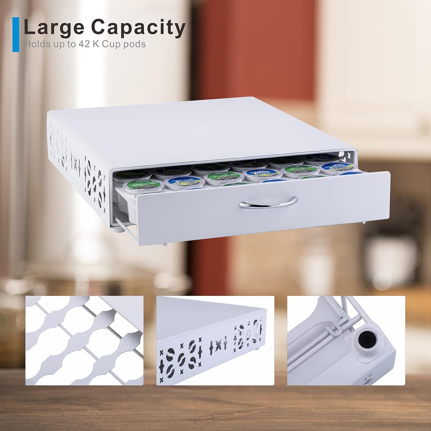 Rice rat Coffee Pod Holder for Keurig Pods iron Top Drawer,K Cup Holder Capsule Display Storage compatibility 42 k-cup Pods (white)