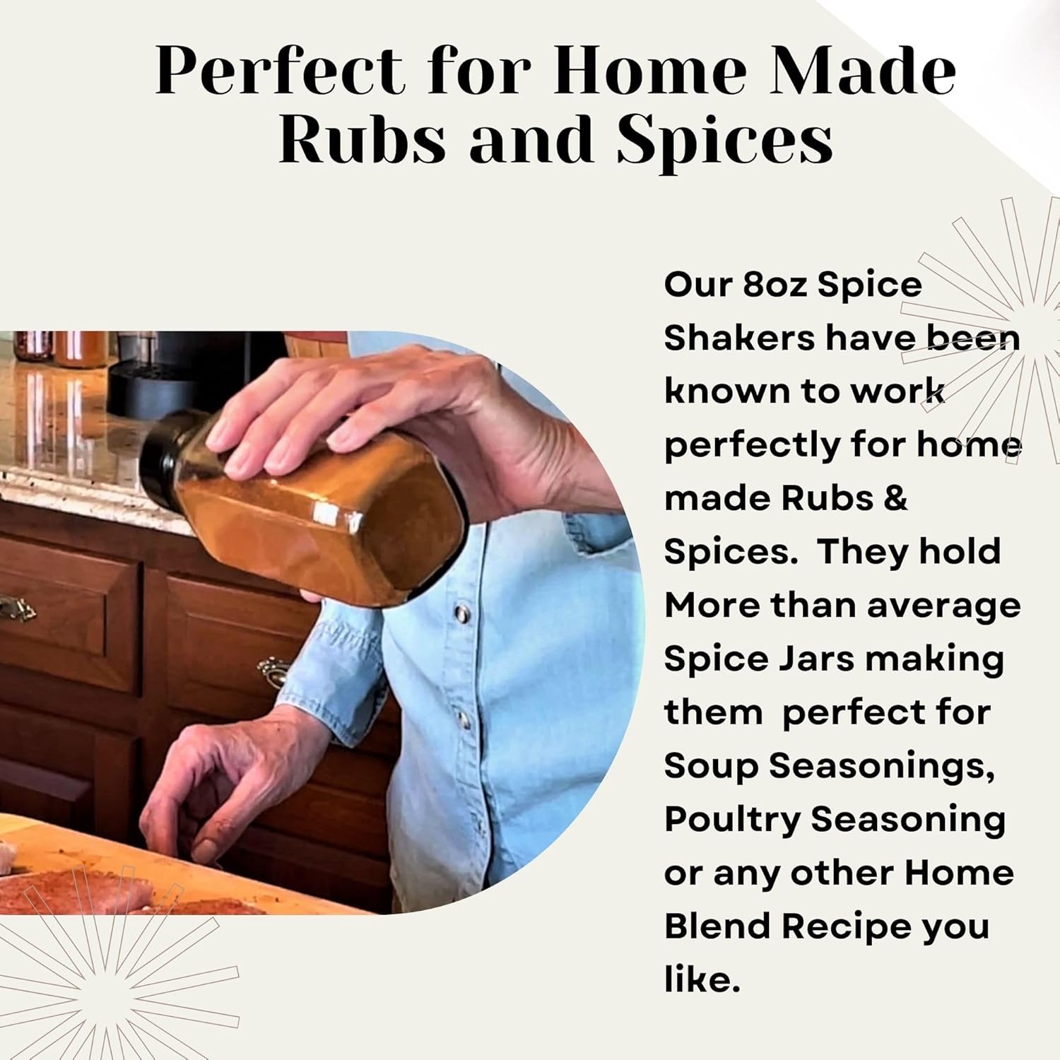 - VERSATILE HOME ESSENTIALS: Glass Spice Shaker with Lids are modern, minimalist home must-haves. Our Large Spice Jars can be used for Parmesan Cheese, Sugar Shaker Dispenser, spice Container, and more.