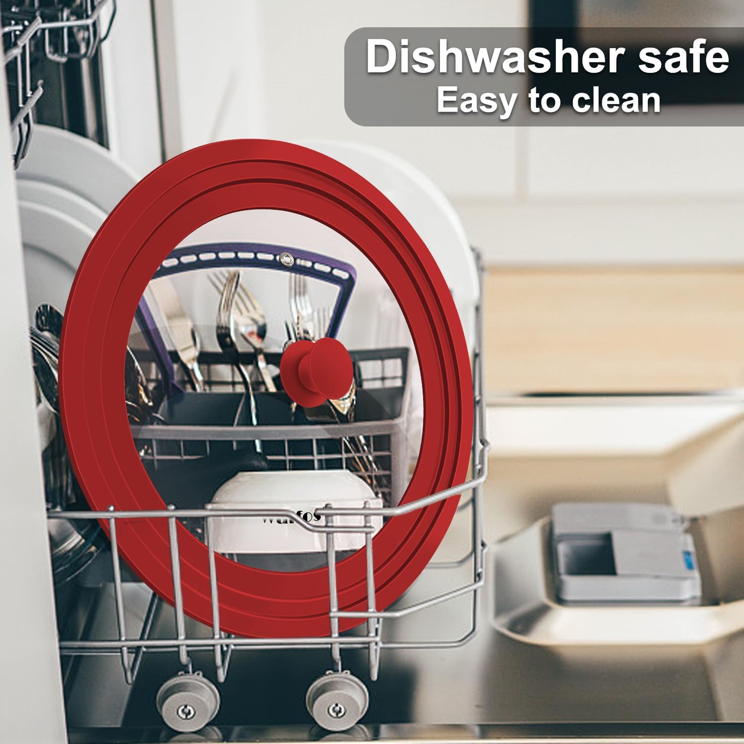 Universal Lid for Pots, Pans and Skillets - Walfos Tempered Glass Pan Lid with Heat Resistant Silicone Rim, BPA Free Large Pot Lids Fits 10", 11" and 12" Diameter Cookware, Dishwasher-Safe, Red