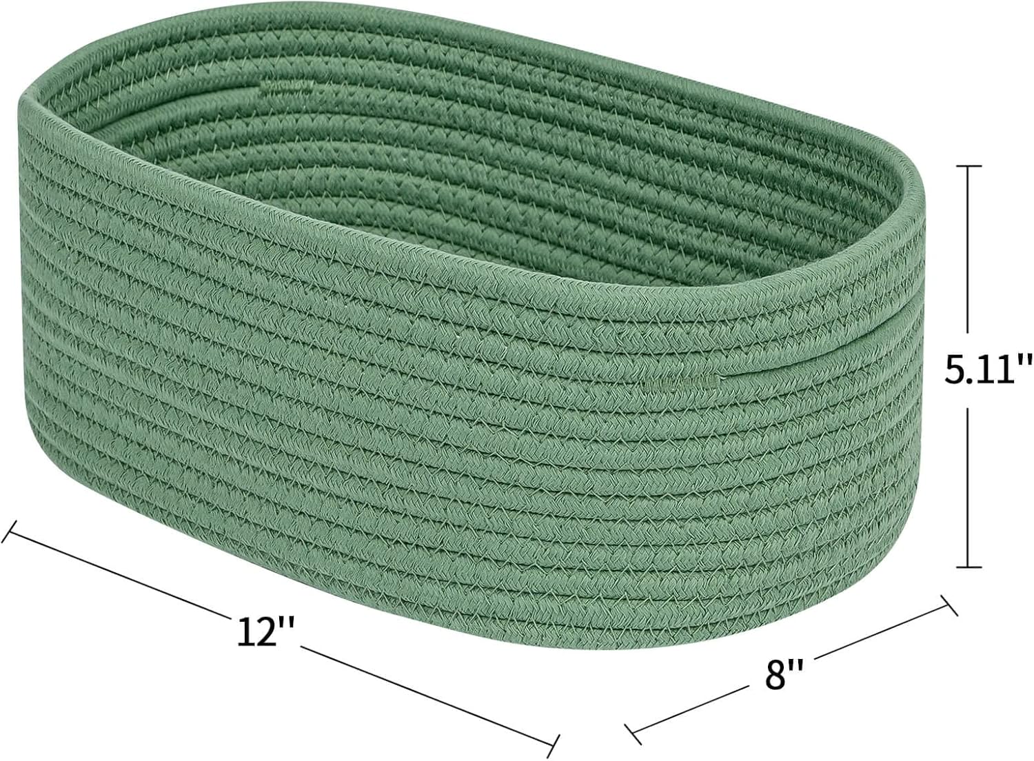 CubesLand Small Storage Basket for Shelves, Woven Rope Green Basket for Organizing, Durable & Skin-Friendly Cube Shelf Closet Organizer Bins, Toy Storage Organizers Bin, Modern Home Decor with Handles