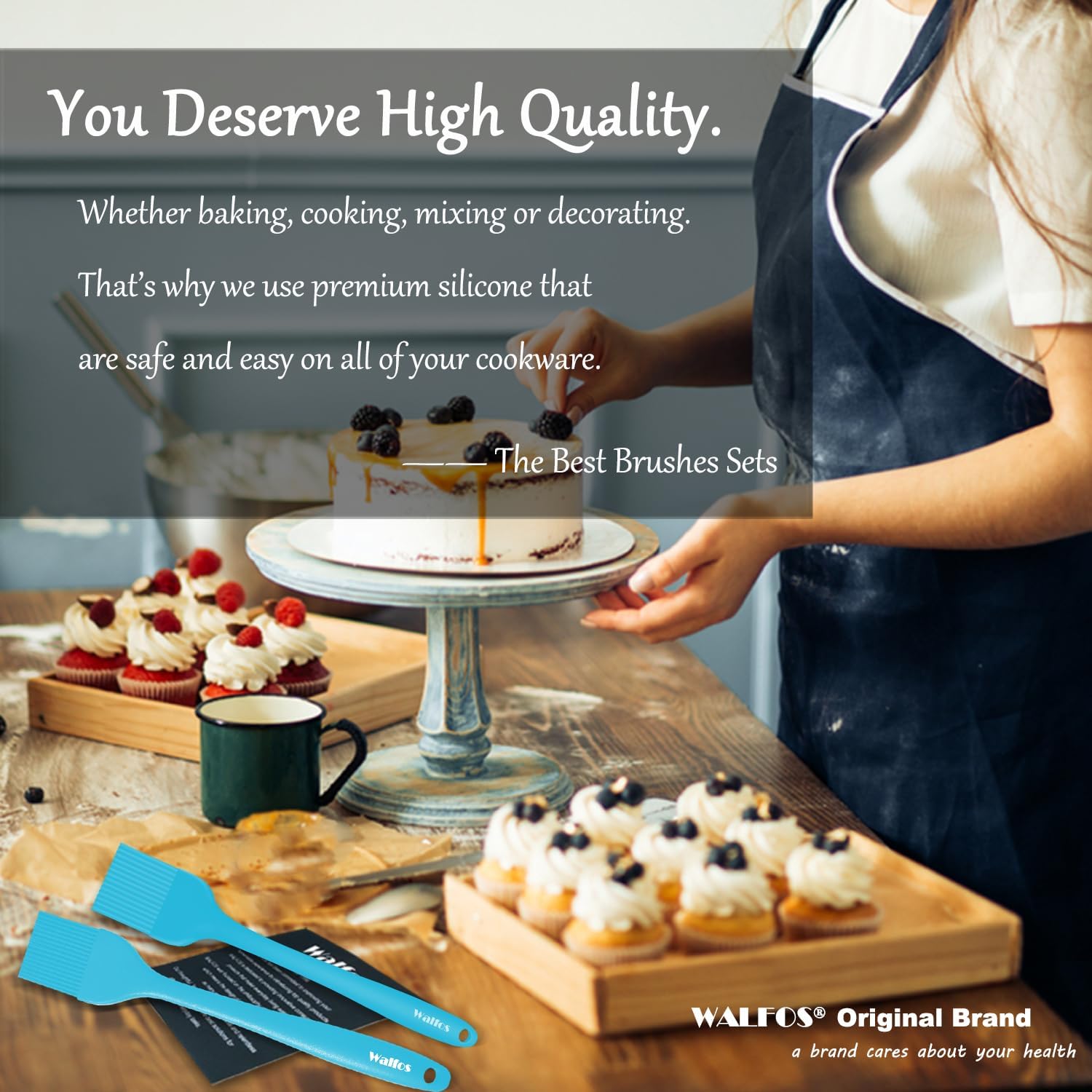 Walfos Silicone Basting Pastry Brush, Heat Resistant Pastry Brush Set, Strong Steel Core and One-Pieces Design, Perfect for BBQ Grill Baking Kitchen Cooking, BPA Free and Dishwasher Safe, 2 Pcs (Blue)