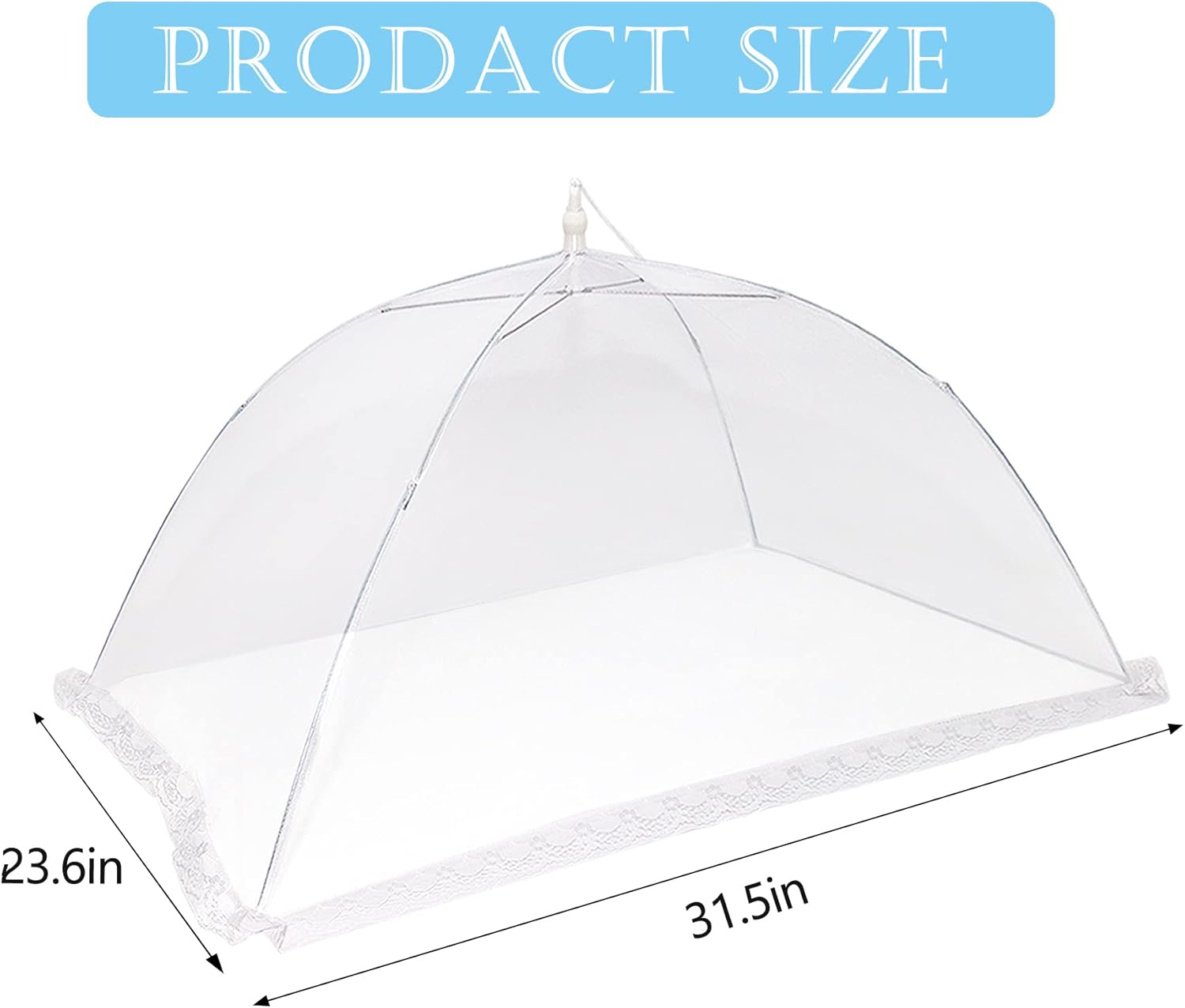 - FOOD COVER MESH: This is large food mesh screen very suitable for picnics and parties. Outdoor food coverage net can reduce stress and improve outdoor dining. The bottom of the foldable food cover is provided with a moderate lace edge as a barrier. It is an effective food web and will not affect the taste of food.
