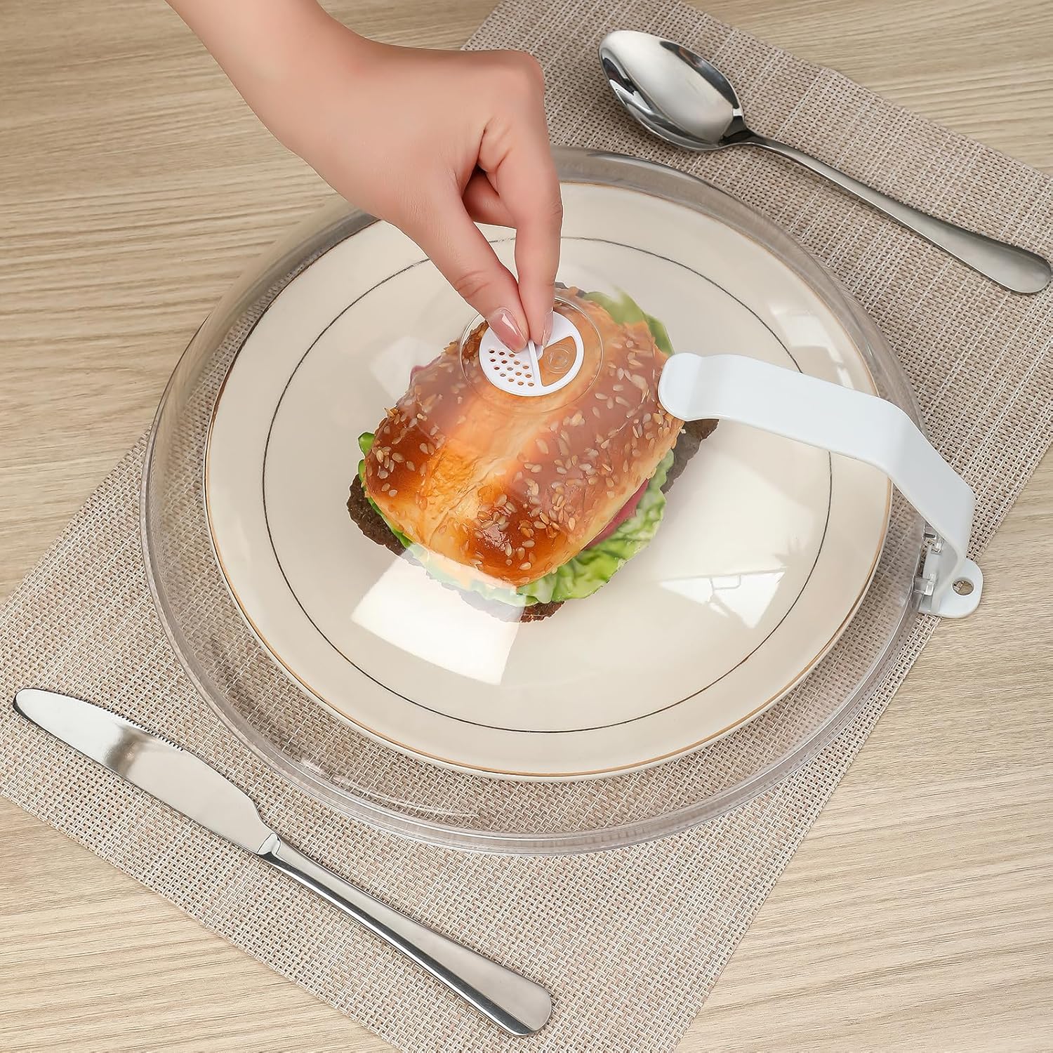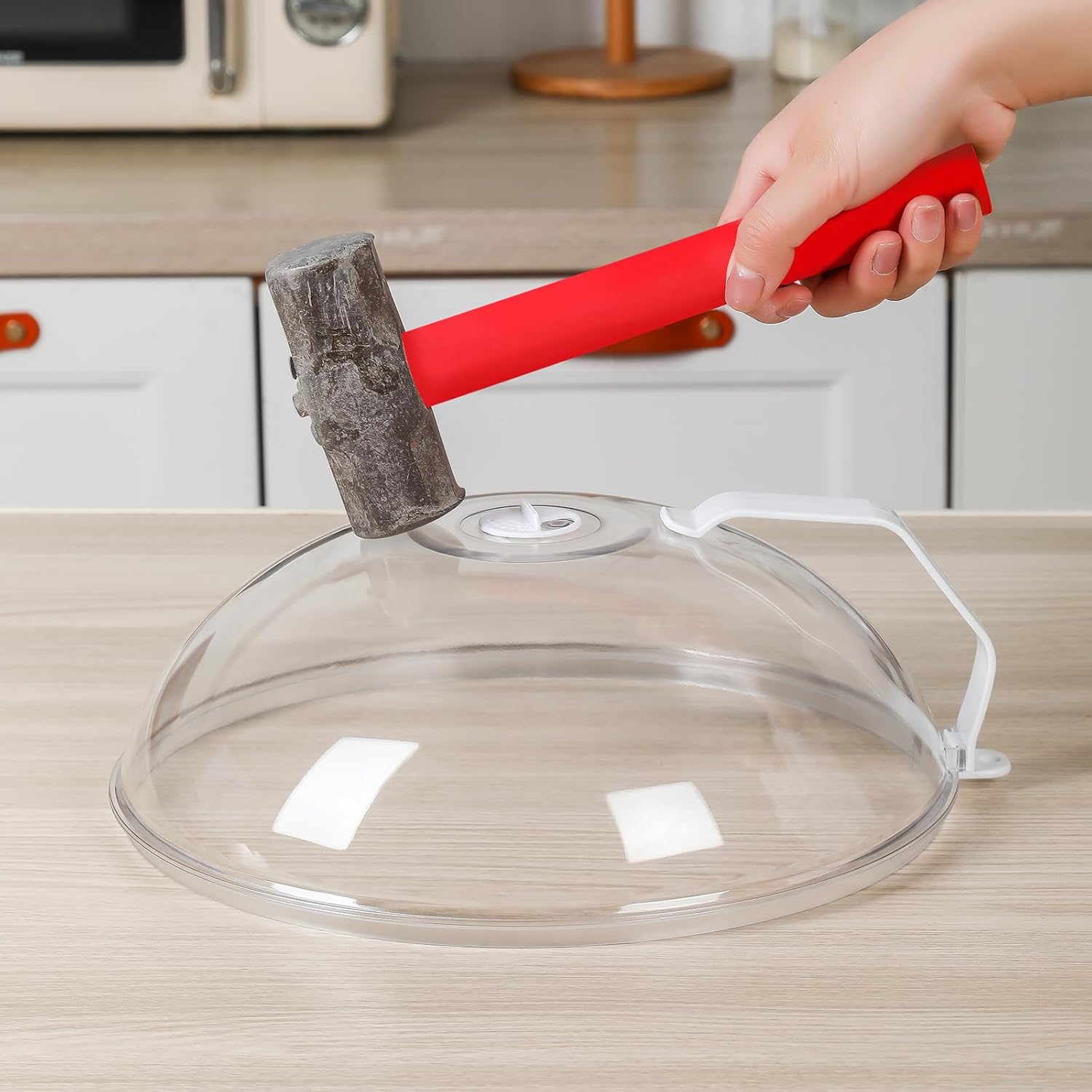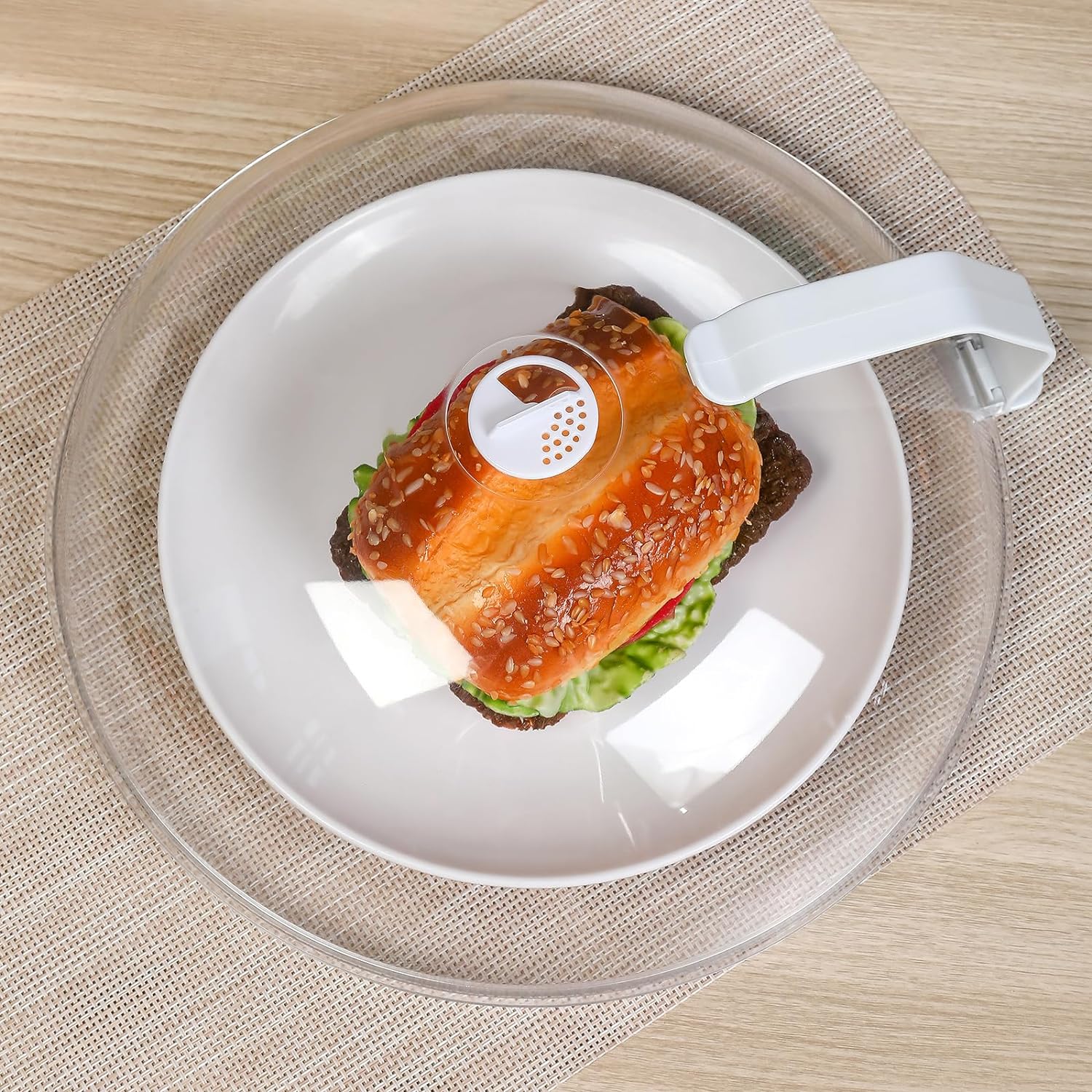 - Large Microwave Dome Cover:The newly upgraded microwave cover handle is more stable,It is easy to see thru when using,transparent like glass, but lighter and stronger than glass,made of food-grade PC material, BPA-free and non toxic,dishwasher safe,grip design easy to hold and hook design for easy storage