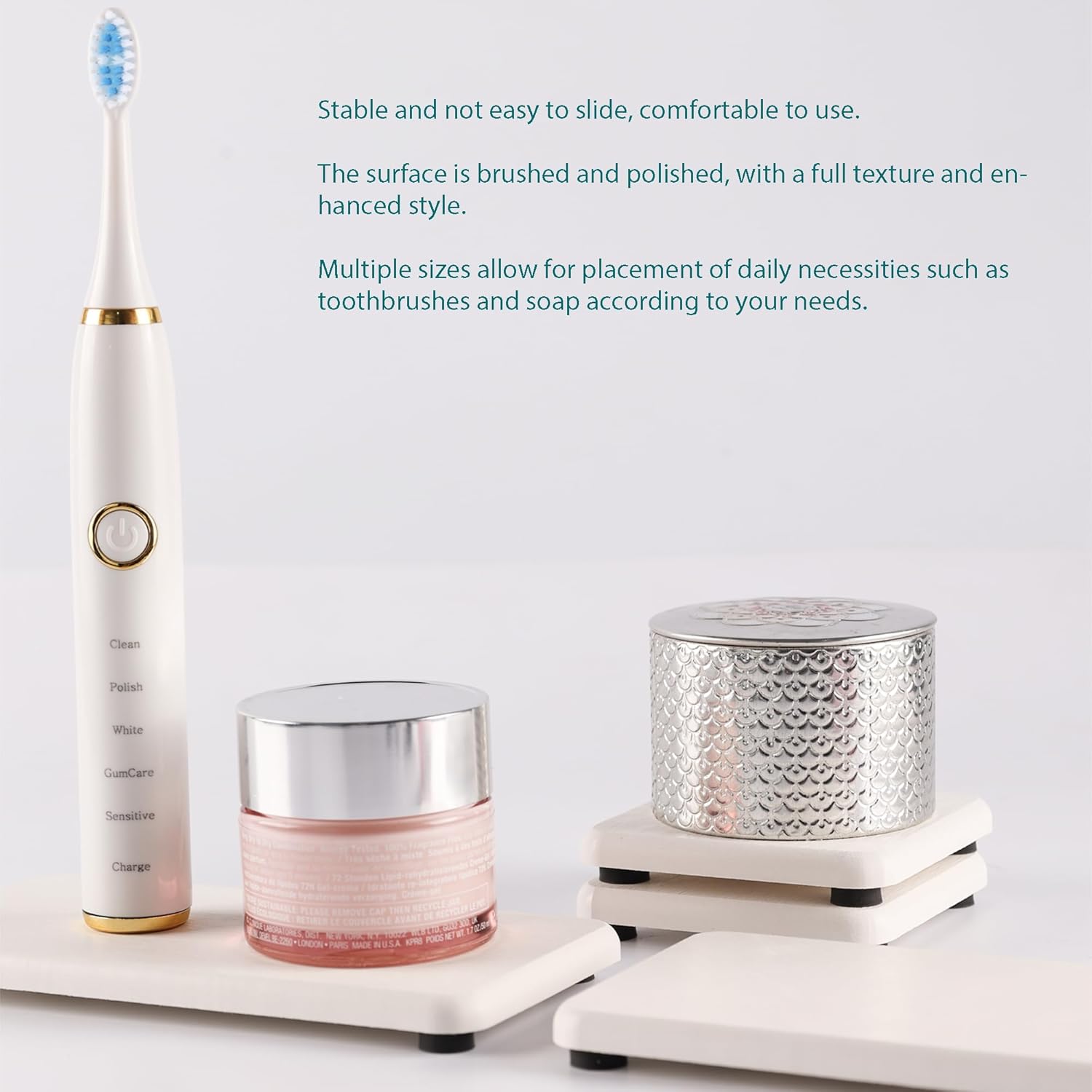 - 3、Silicone footpads boost the slip-resistance of coasters while keeping them out of the bathroom vanity. This design improves the contact surface between the diatomaceous earth coaster and the air, accelerate moisture evaporation, and prolongs the service life of the product.