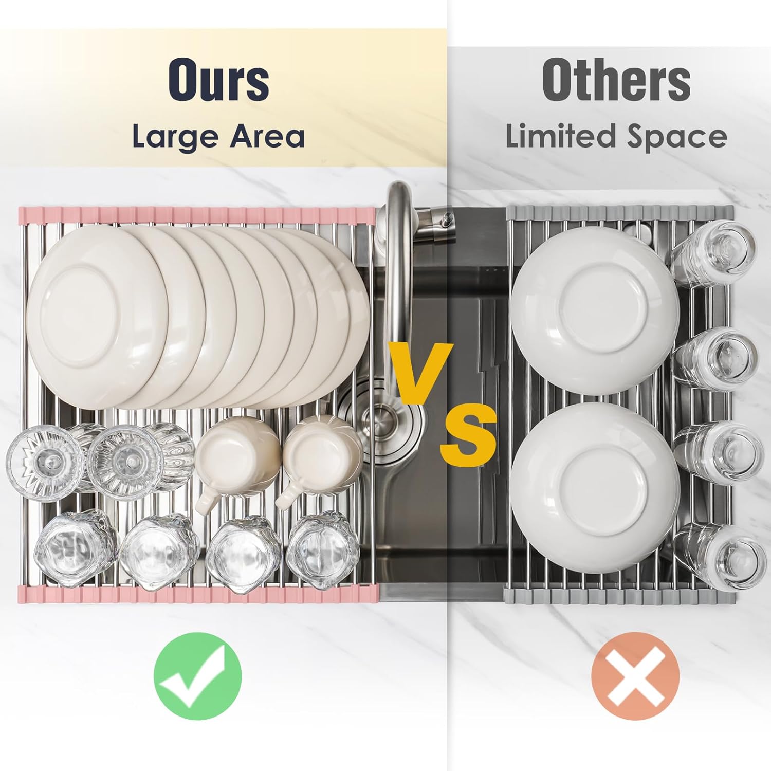 Tomorotec 17.7" x 15.5" Roll Up Dish Drying Rack Over Sink Drying Rack Sink Cover Kitchen Sink Accessories Gadget Multipurpose Organizer Foldable Stainless Steel Drainer