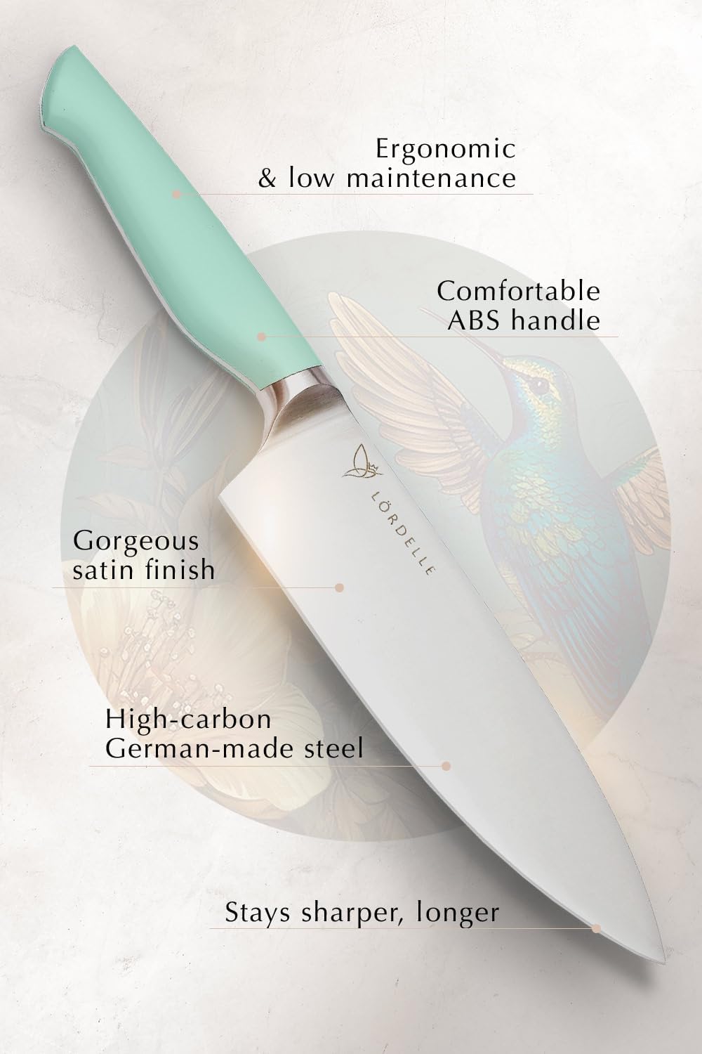 - Stunning Design Meets Comfort & Function: Discover the perfect blend of style and utility with Lordelle's "Right Size" concept. Smaller, ergonomically designed knives and a compact block that enhance both your cooking and kitchen décor, without taking up too much space.