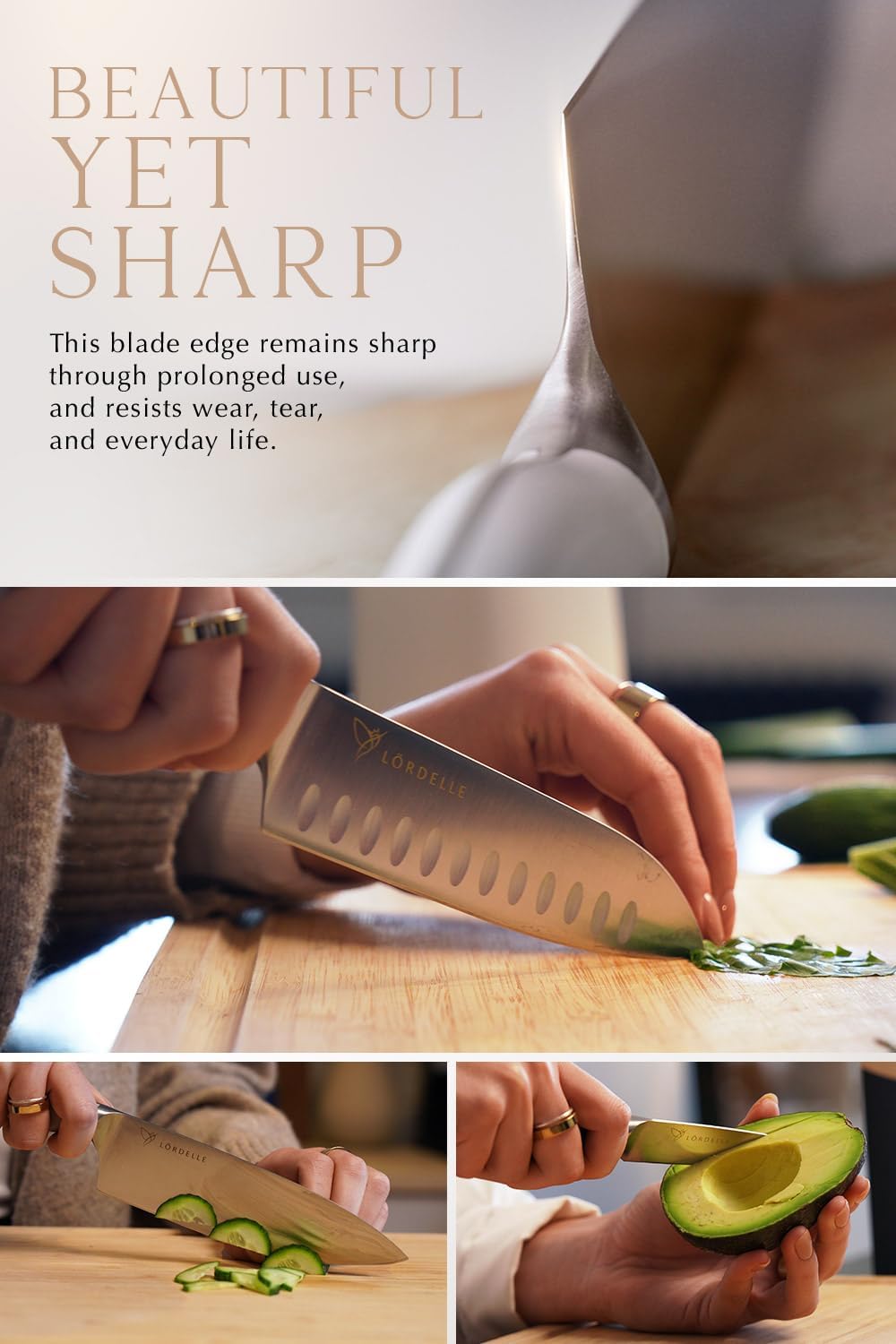 - Stunning Design Meets Comfort & Function: Discover the perfect blend of style and utility with Lordelle's "Right Size" concept. Smaller, ergonomically designed knives and a compact block that enhance both your cooking and kitchen décor, without taking up too much space.