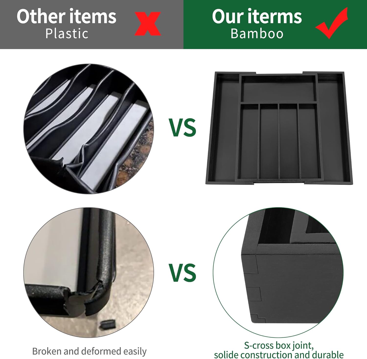 - Natural Bamboo Material: We constructed our kitchen drawer dividers with organic bamboo that features in sturdy, elegant, and durable