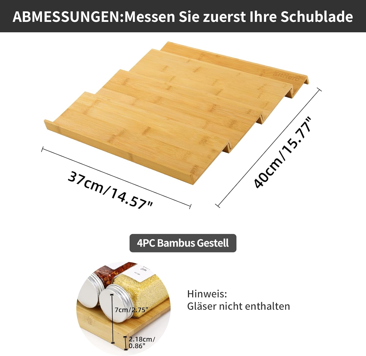 - Perfect Size: Spice rack organizer for drawer MIN size: 14.57" wide x 15.8" deep x 2.75" high, standard 4 oz spice jars fit easily into the drawer sliding and closing completely.please measure your drawer before ordering!