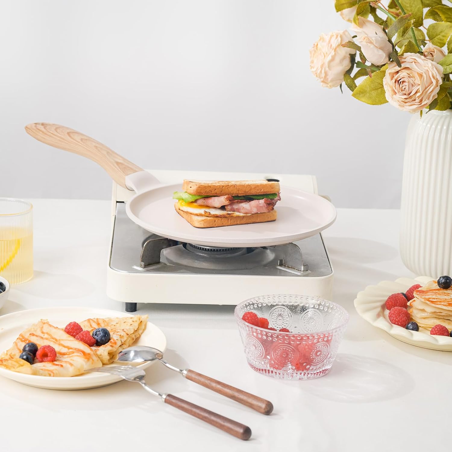 JEETEE Crepe Pan Nonstick, 11 inch Comales Para Tortillas Griddle Pan for Stove Top, Granite Coating Flat Pancake Pan Dosa Tawa, PFOA FREE and Induction Compatible (Beige)