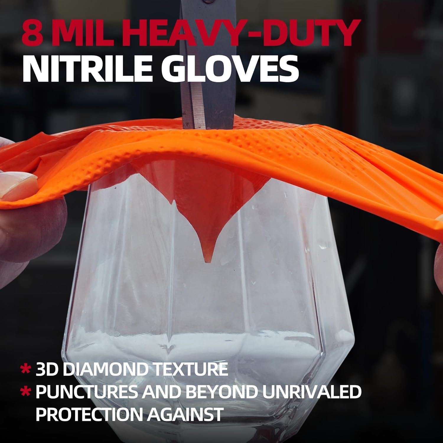 - High Visibility: The vibrant orange nitrile gloves enhance visibility in dimly lit environments, significantly improving safety during heavy-duty tasks in mechanics, automotive, construction, and manufacturing industries